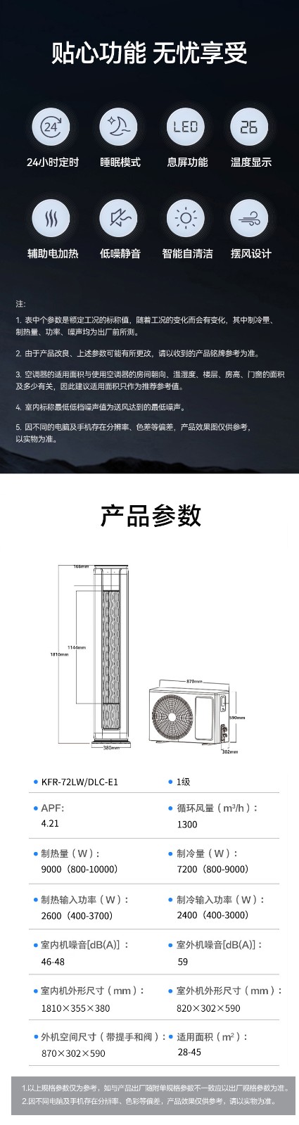 商品名称:康佳3匹一级能效冷暖柜机空调KFR-72LW/DLC-E1 6941794705730 偏远另加运费