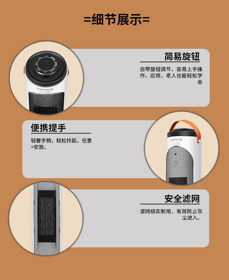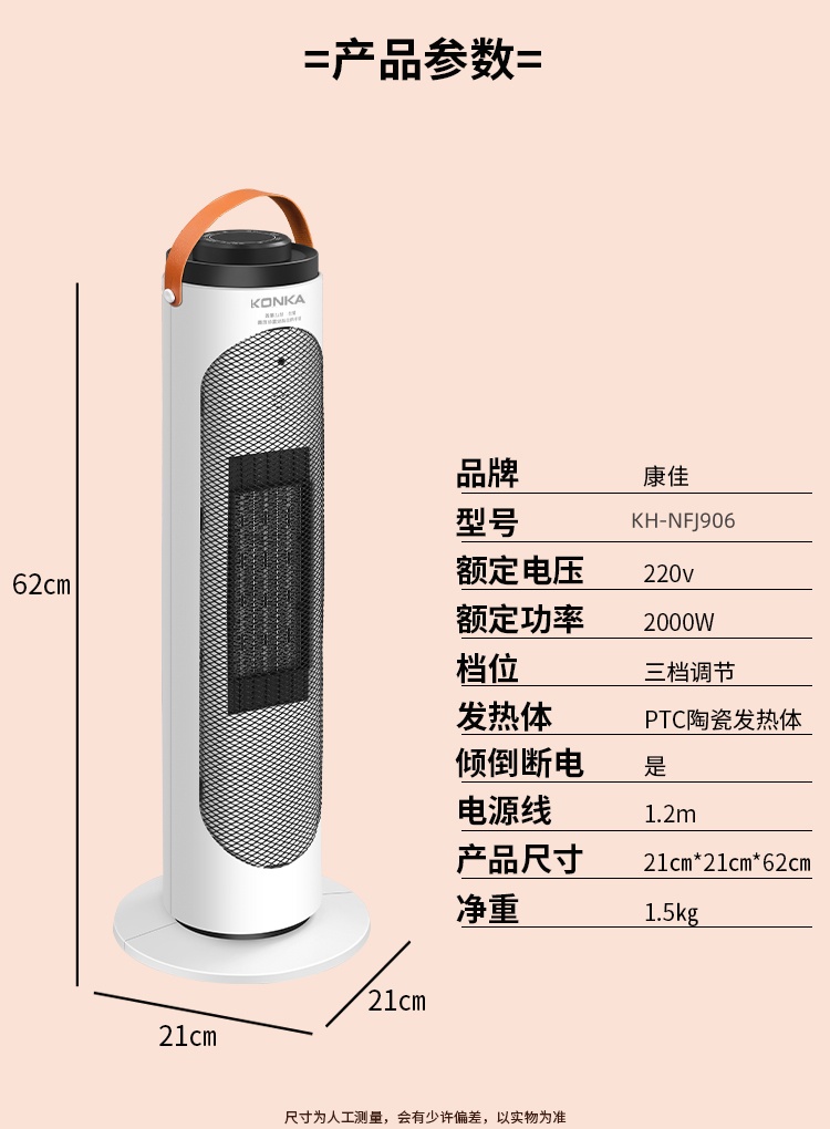 康佳PTC陶瓷发热暖风机KH-NFJ906 6974419883209 偏远另加运费
