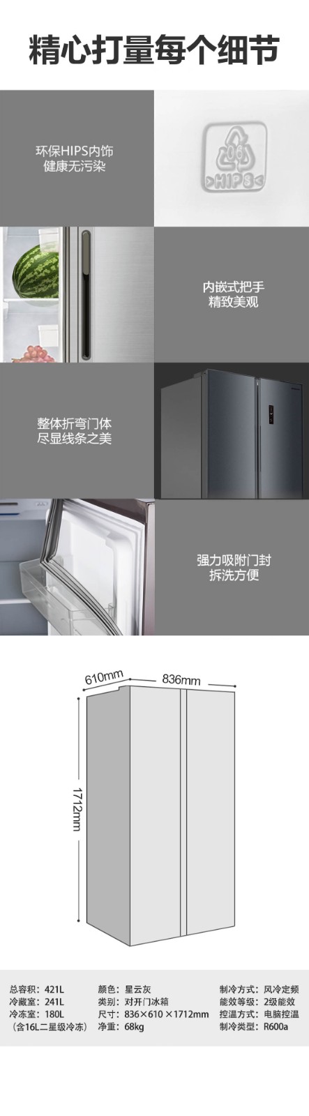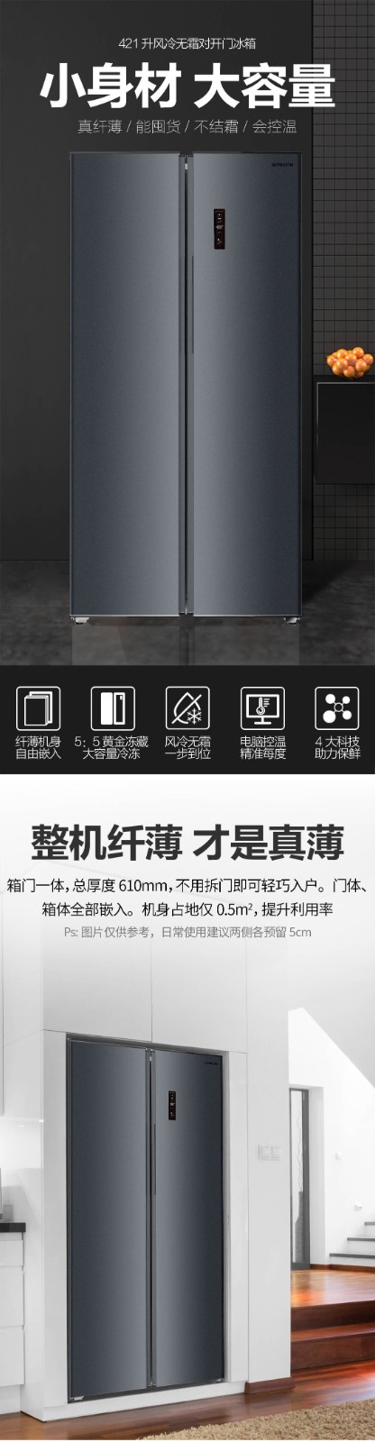 商品名称:创维421升对开门冰箱BCD-421WKP_星云灰 6923372299015 偏远另加运费