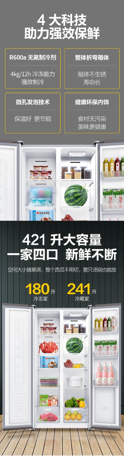 创维421升对开门冰箱BCD-421WKP_星云灰 6923372299015 偏远另加运费