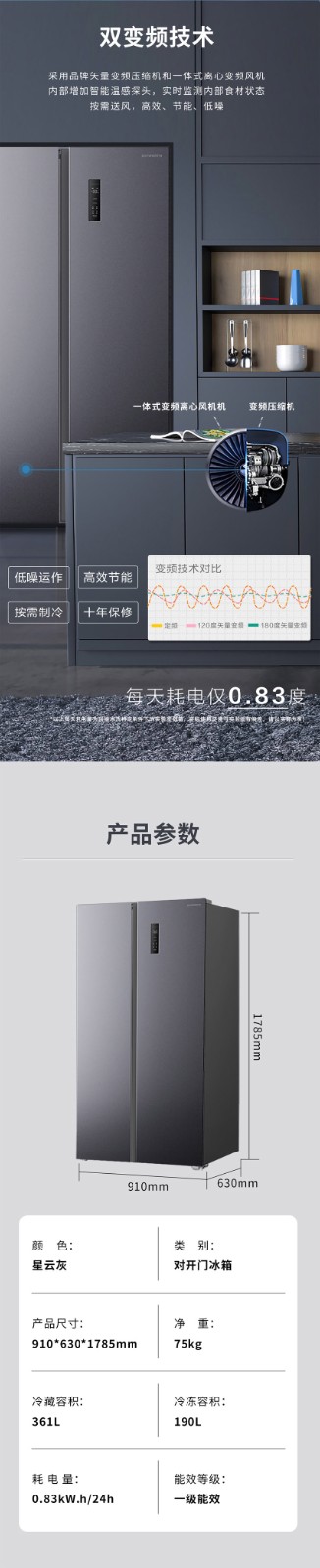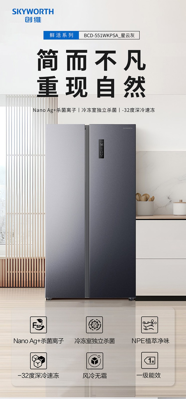 商品名称:创维551升对开门冰箱BCD-551WKPSA_星云灰 6923372272087 偏远另加运费
