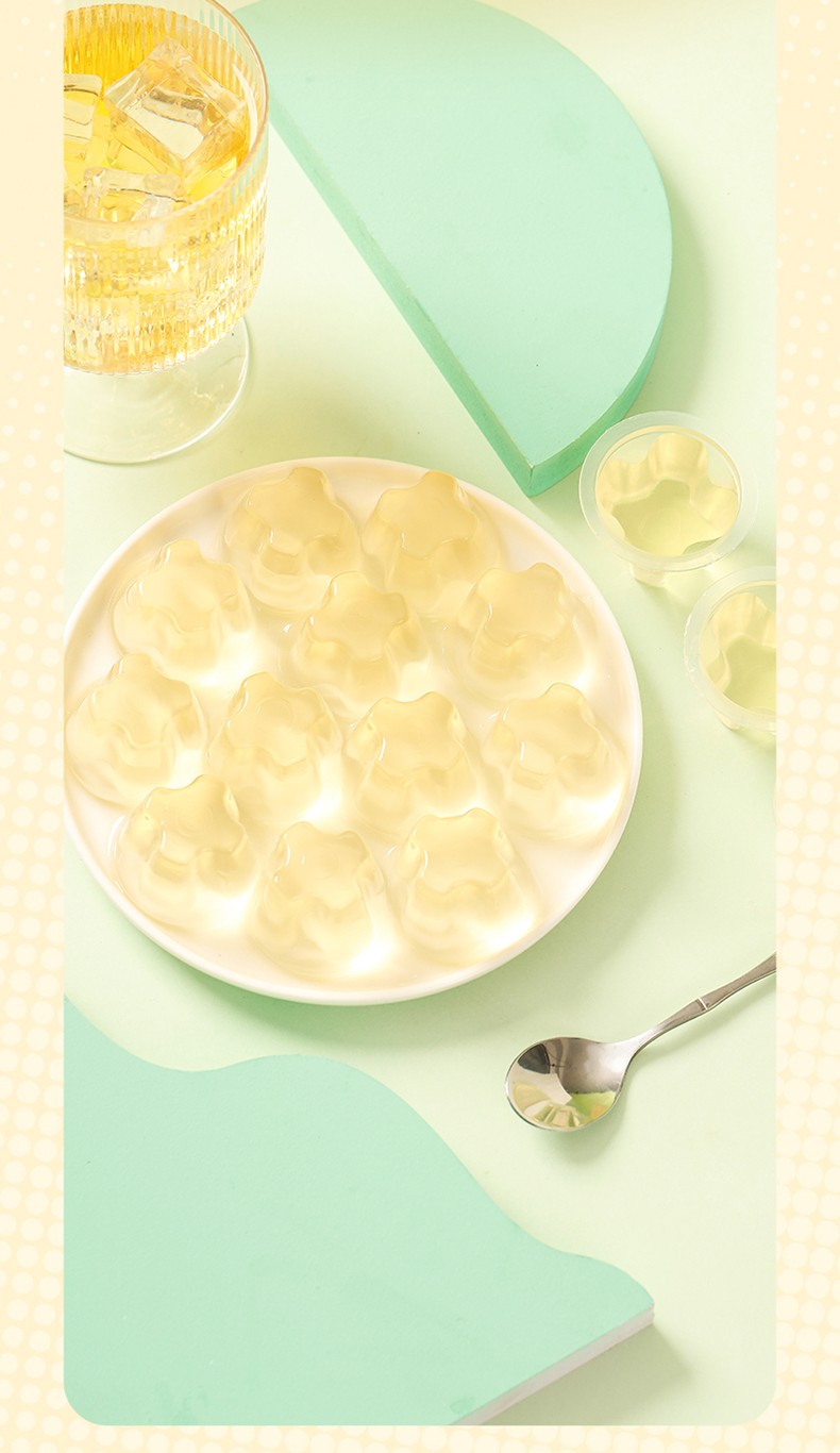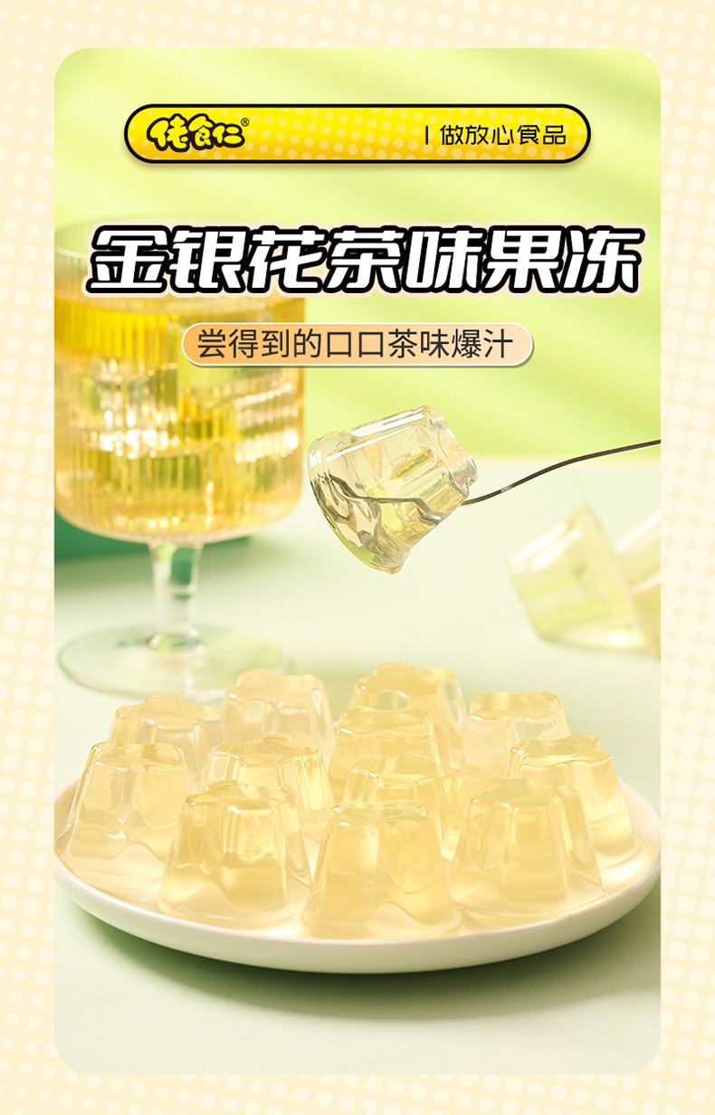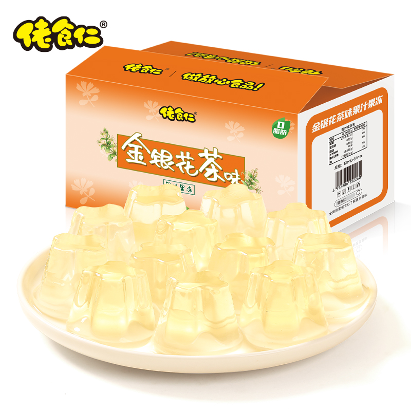 商品名称:佬食仁金银花茶味果冻500g/箱约20个
