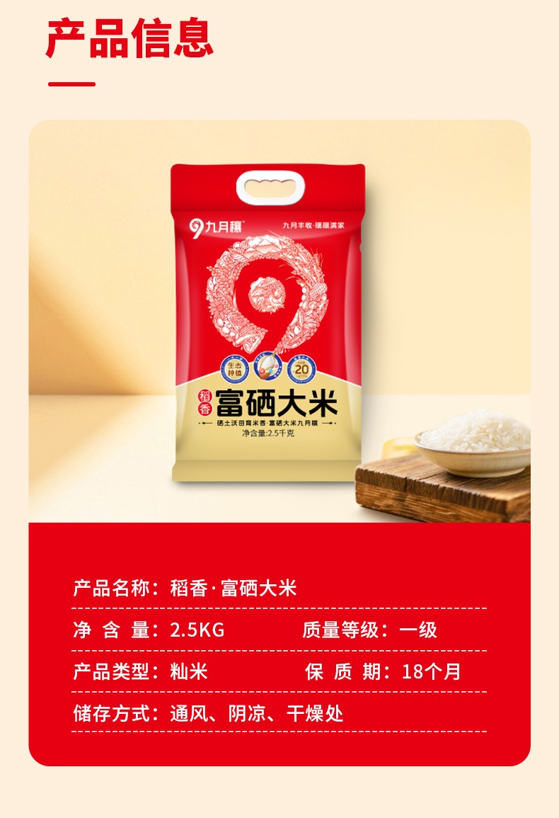 商品名称:九月穰 稻香·富硒大米2.5kg 6978297390545偏远另加运费