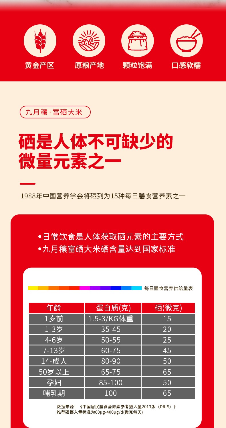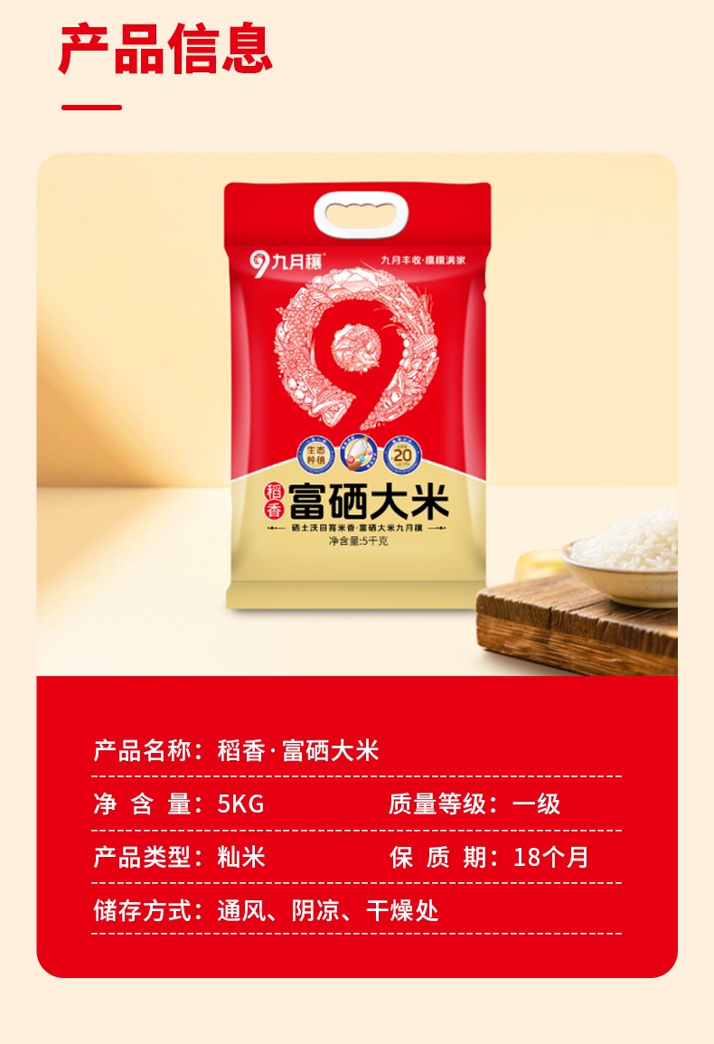 商品名称:九月穰 稻香·富硒大米5kg 6978297390538偏远另加运费
