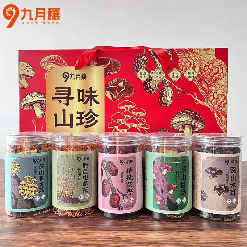 九月穰 菌菇礼盒 香菇木耳虫草花黄金菇灰枣寻味山珍450g6978297390569偏远另加运费