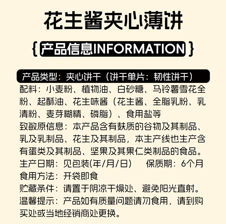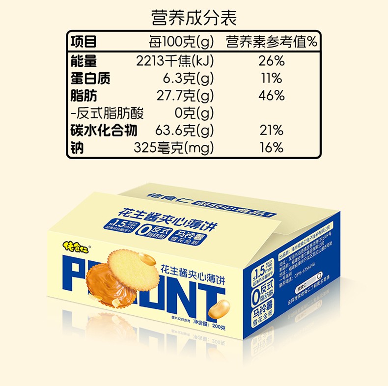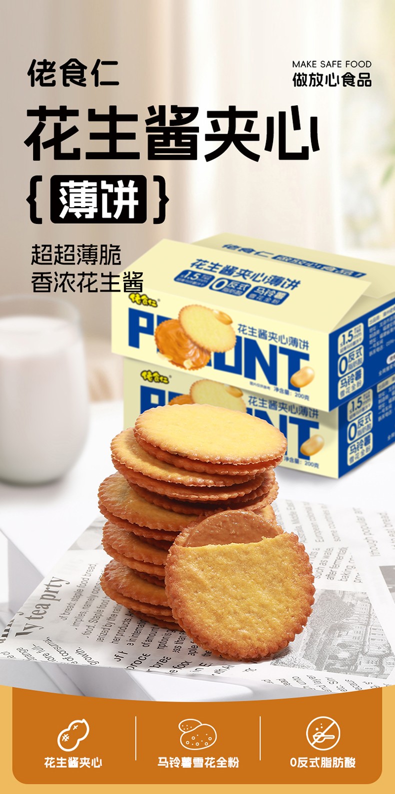 商品名称:佬食仁花生酱夹心薄饼200g约25包6972886553731