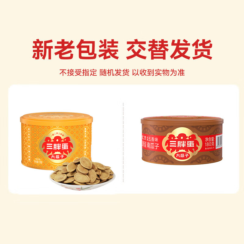 商品名称:三胖蛋五香味南瓜子180g*2罐 新旧包装随机发 360g 6925723000837