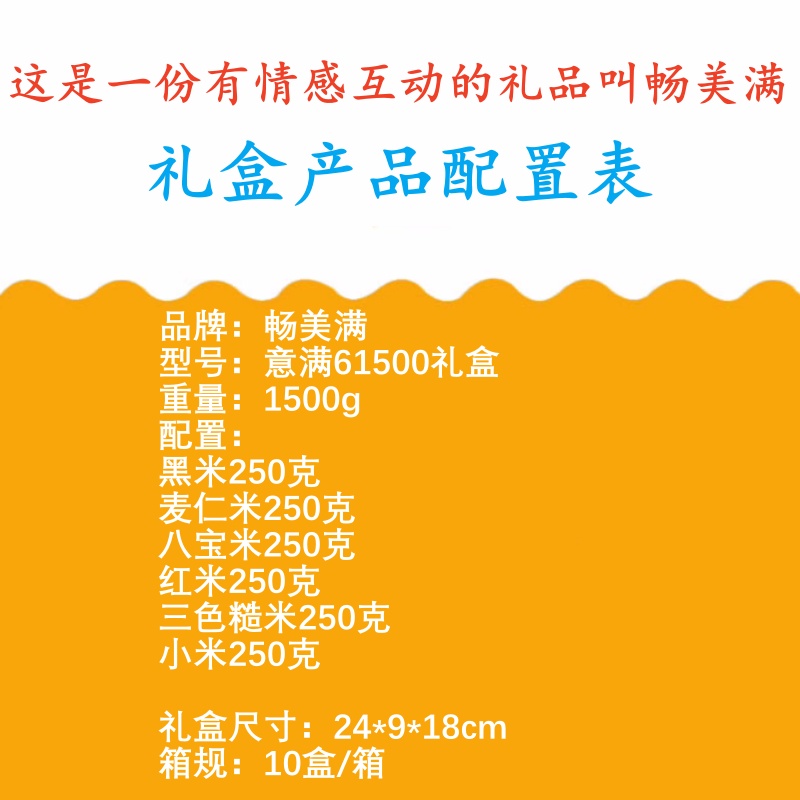商品名称:畅美满 五谷杂粮 意满61500礼盒 6袋1500g 真空包装 红米小米麦仁米