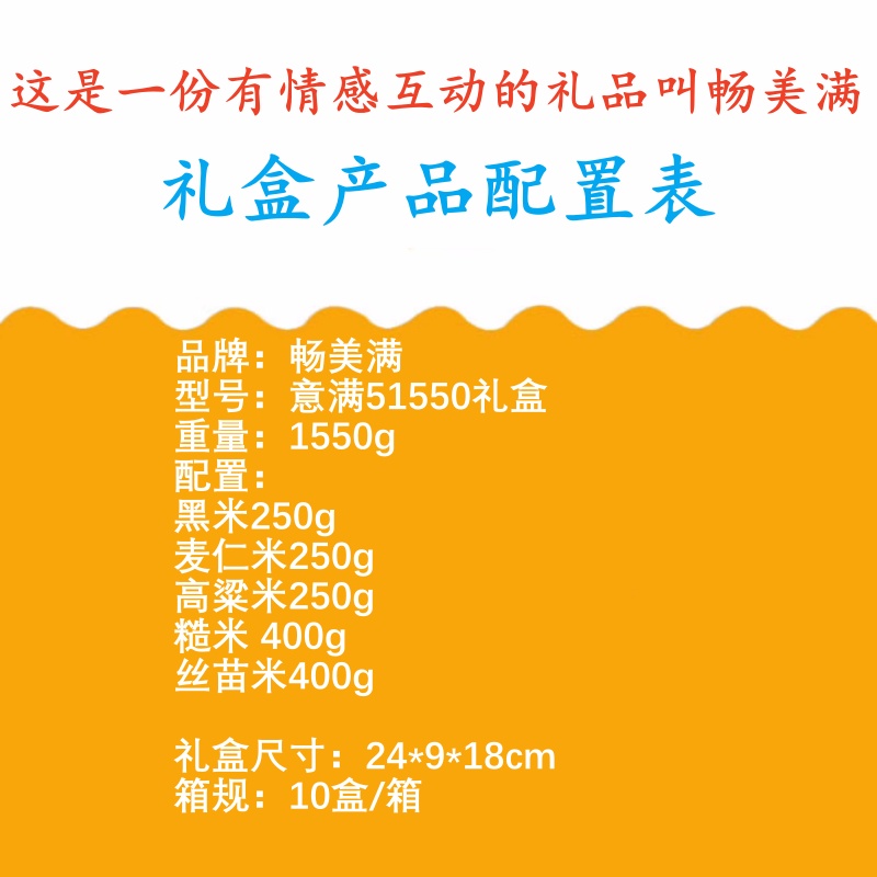 商品名称:畅美满 五谷杂粮 意满51550礼盒 5袋1550g 真空包装 丝苗米高粱米黑米糙米