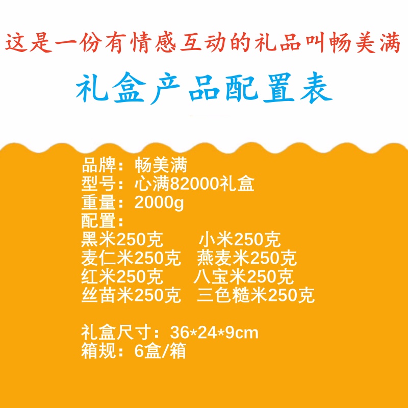 商品名称:畅美满 五谷杂粮 心满82000礼盒 8袋2000g 真空包装 八宝米三色糙米燕麦米