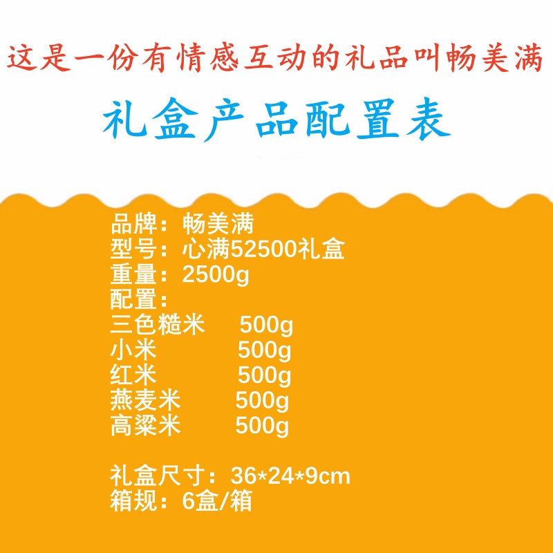 商品名称:畅美满 五谷杂粮 心满52500礼盒 5袋2500g 真空包装 小米红米高粱米三色糙米员