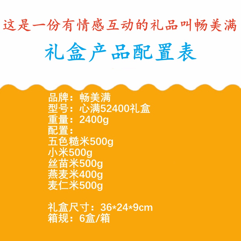 商品名称:畅美满 五谷杂粮 心满52400礼盒 5袋2400g 真空包装 燕麦米麦仁米小米五色糙米员