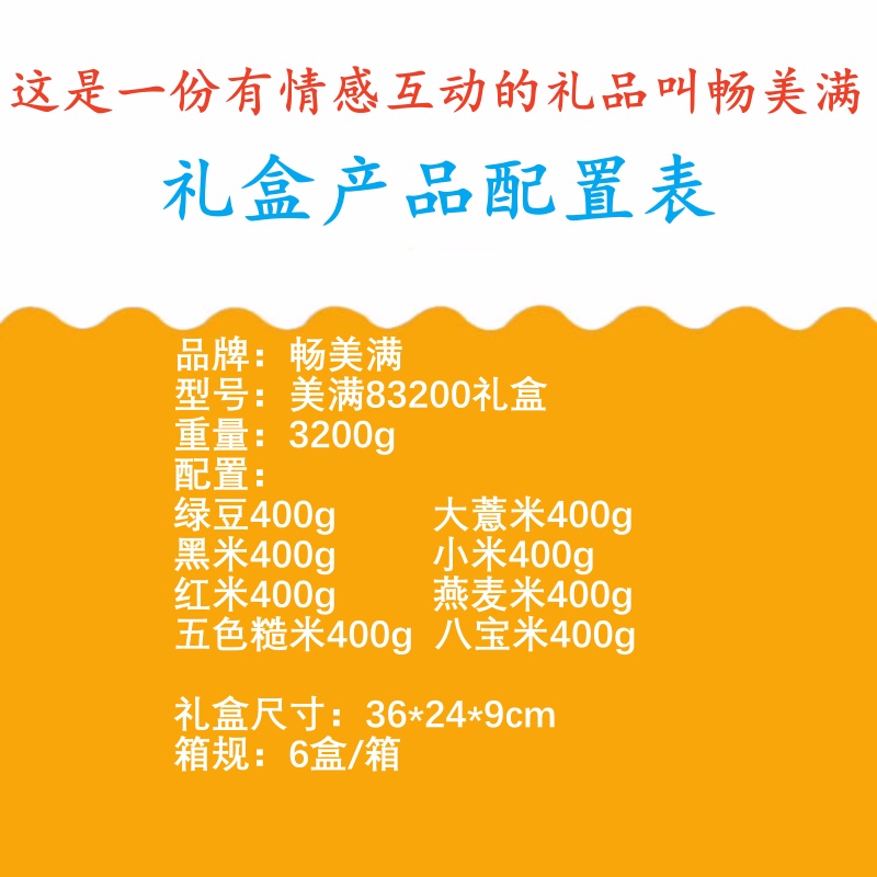 商品名称:畅美满 五谷杂粮 美满83200礼盒 8袋3200g 真空包装 夏季清凉绿豆薏米八宝米燕麦米