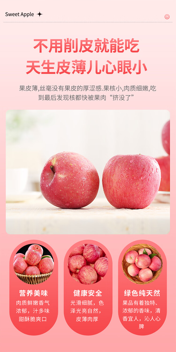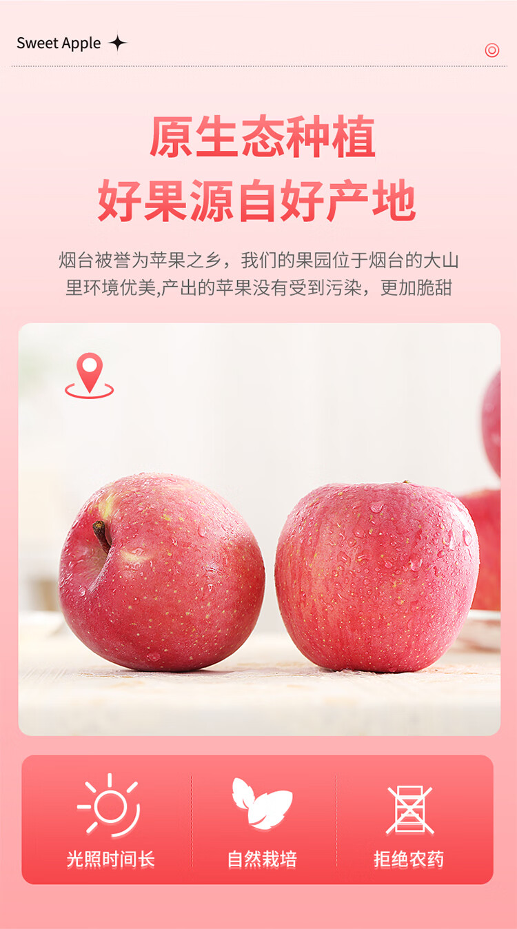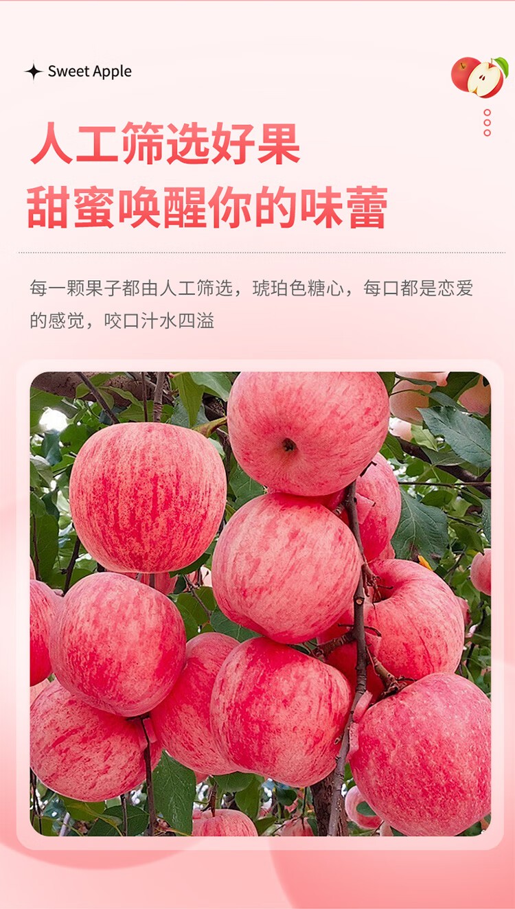 商品名称:烟台栖霞红富士苹果彩箱一级果净重8斤果径80mm+ 约17-22枚