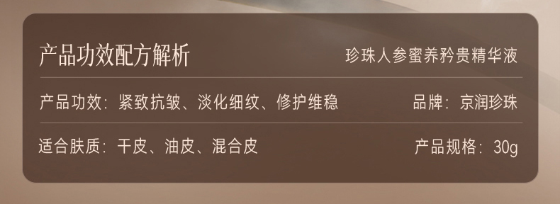 商品名称:京润珍珠30g珍珠人参蜜养矜贵精华液 6922401181475 偏远地区运费另算