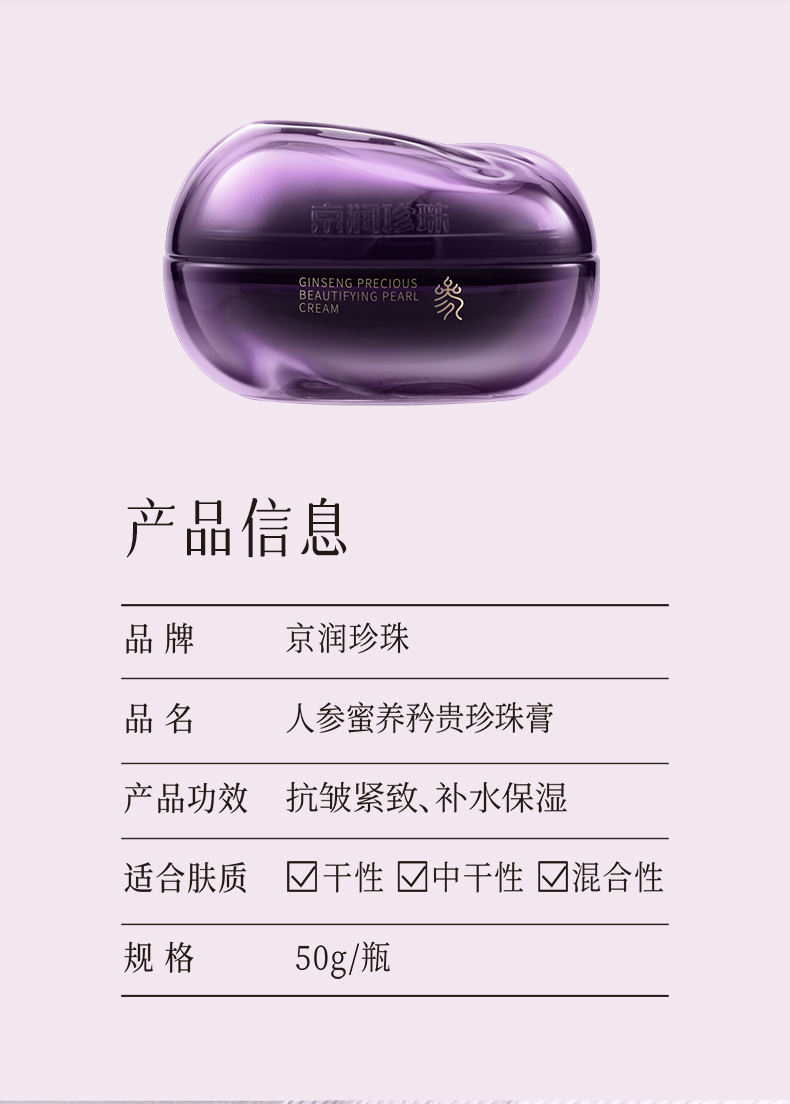 商品名称:50g人参蜜养矜贵珍珠膏 6922401181468 偏远地区另算运费