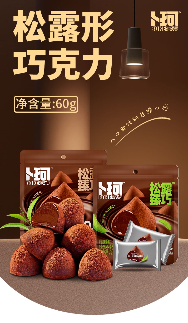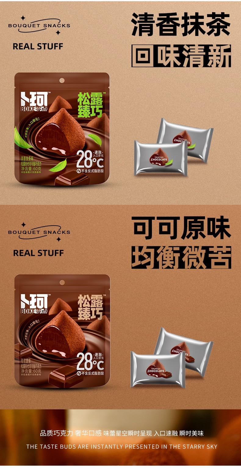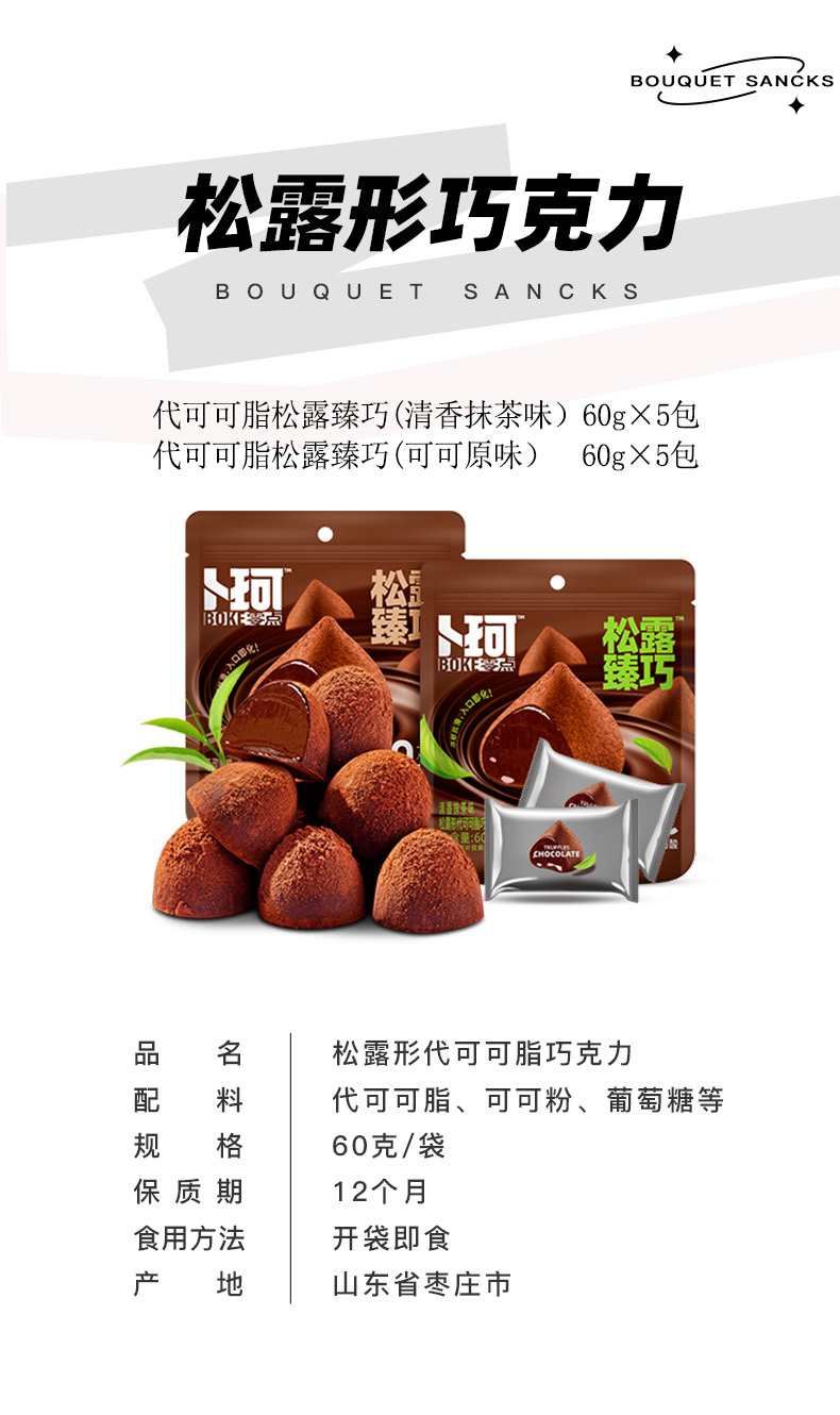 商品名称:卜珂零点松露臻巧巧克力两口味装(清香抹茶味、可可原味)600克