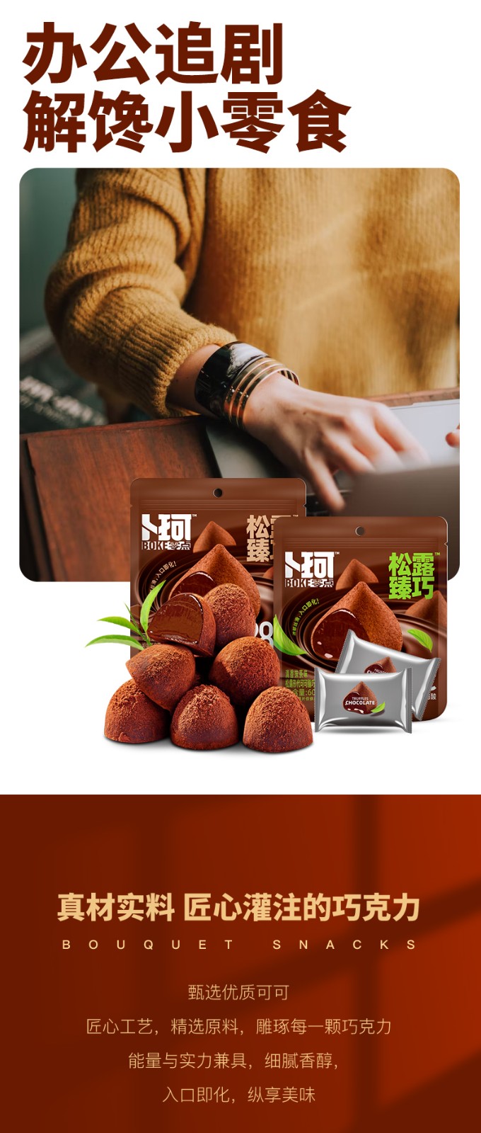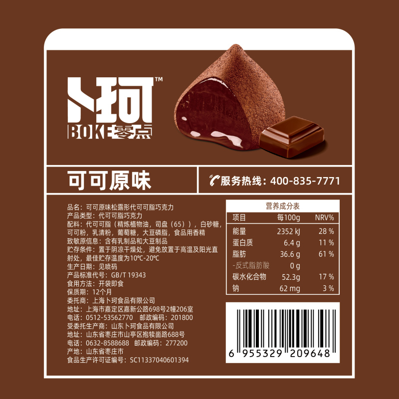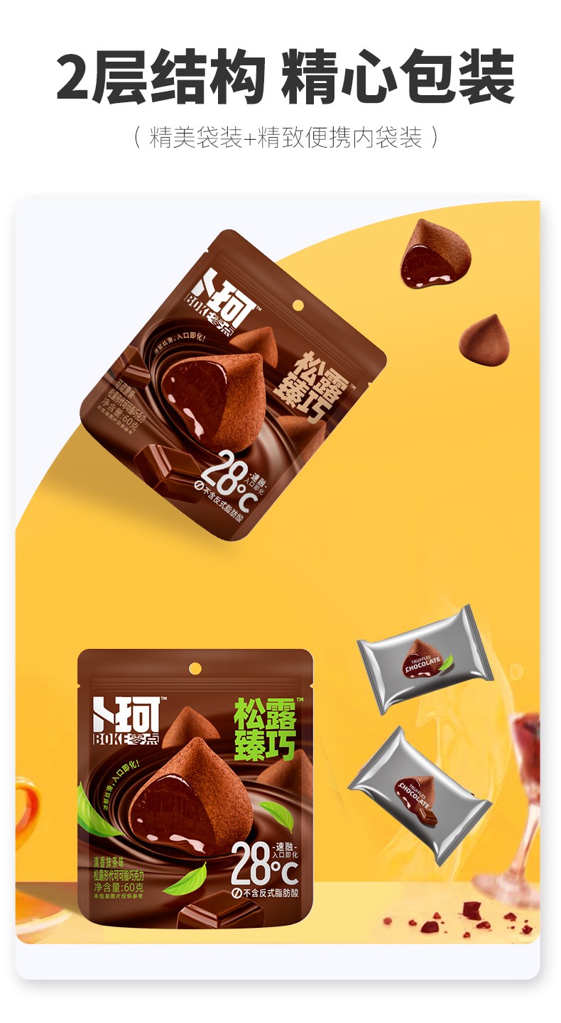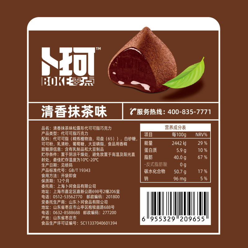 商品名称:卜珂零点松露臻巧巧克力两口味装(清香抹茶味、可可原味)600克