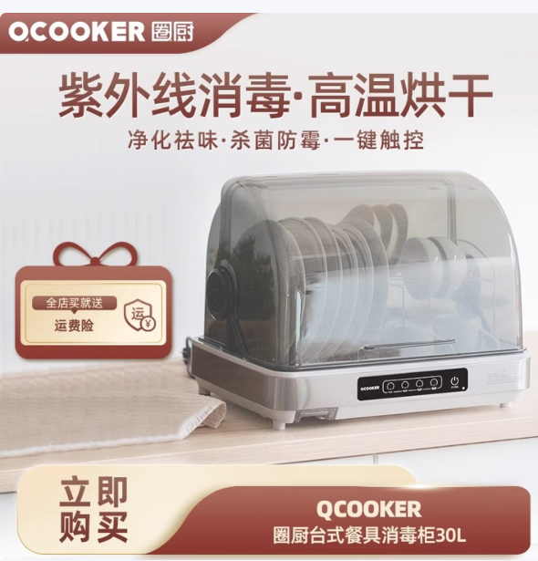 商品名称:圈厨(QCOOKER)台式食具消毒柜ZTD30-1A 2.97kg 6971143943476 偏远另加运费