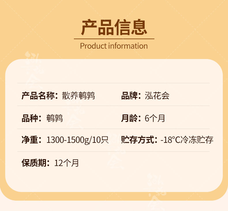 商品名称:泓花会散养速冻谷饲鹌鹑单只150克左右 10只装 6974644230014 顺丰包邮 偏远另加运费
