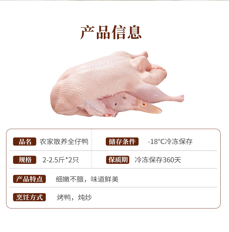 商品名称:泓花会农家全仔鸭土鸭笨鸭急冻速发新鲜鸭肉约2-2.5斤/只 2只装 6974644231004 顺丰包邮 偏远另加运费