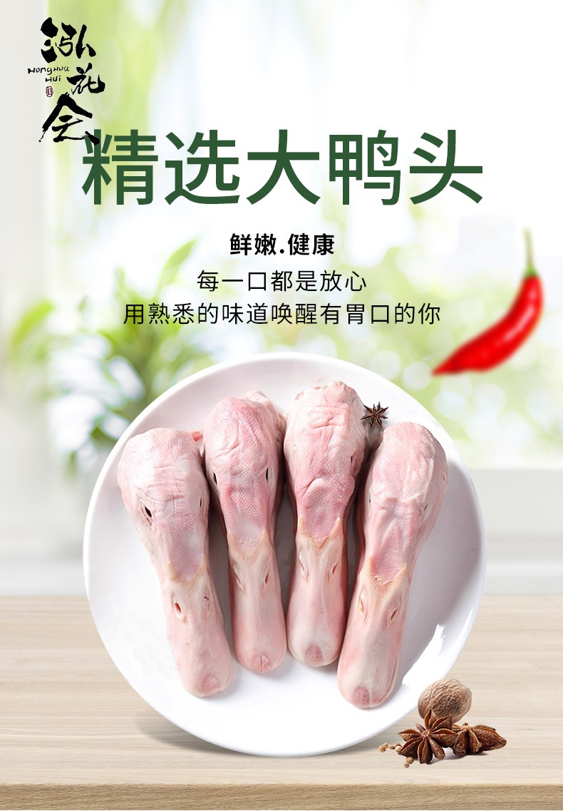商品名称:泓花会新鲜冷冻散养鸭头2斤装 6974644232629 顺丰包邮 偏远另加运费