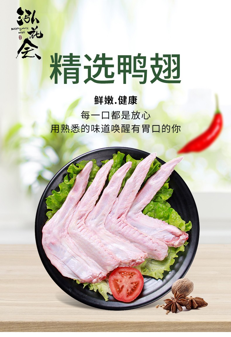 商品名称:泓花会新鲜冷冻散养鸭翅二节翅2斤装 6974644232568 顺丰包邮 偏远另加运费