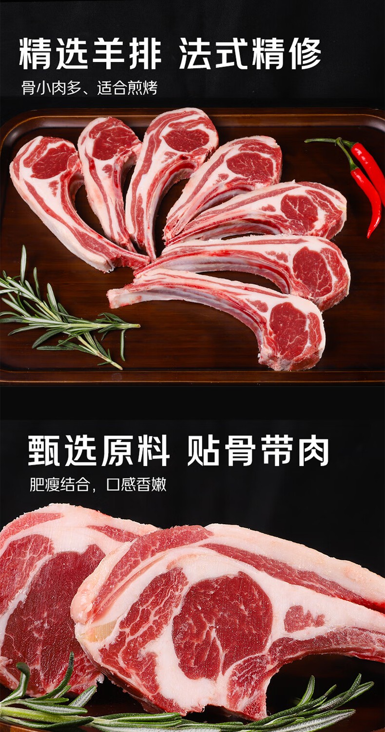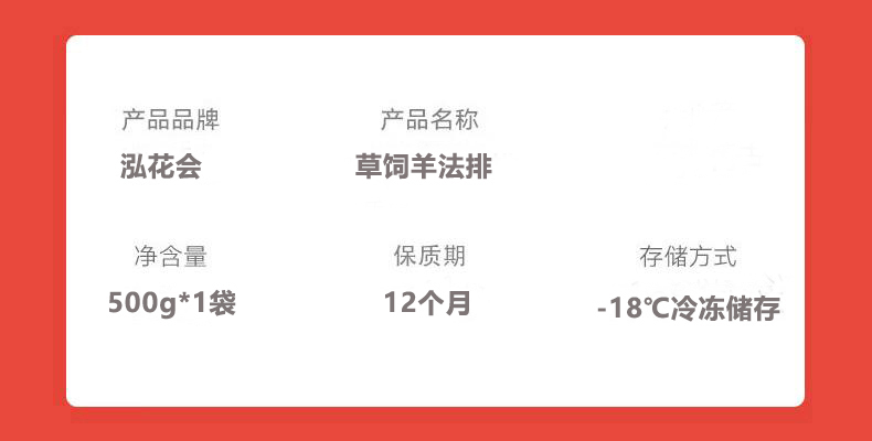 商品名称:泓花会纯散养草饲原切原切羊法排500g*2袋 6974644232490 顺丰包邮 偏远另加运费