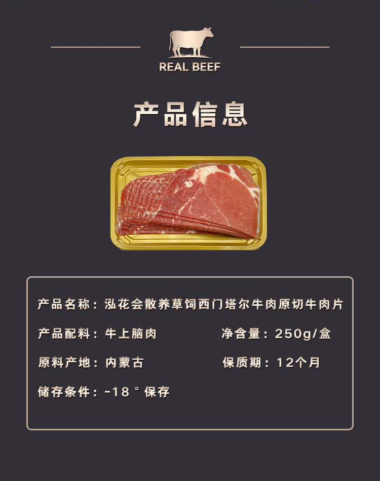 商品名称:泓花会纯散养草饲西门塔尔牛肉原切牛肉片250g/盒*2盒 6974644232797 顺丰包邮 偏远另加运费