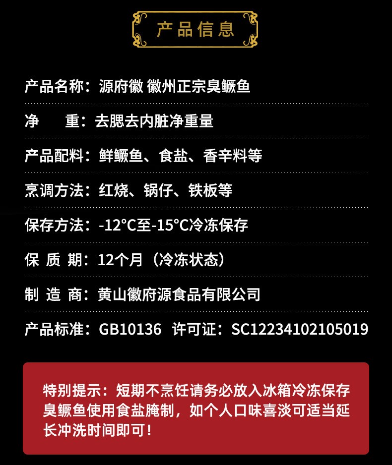 源府徽精选臭鳜鱼生鲜版300-350g*3条(送料包) 6977996570012 偏远另加运费