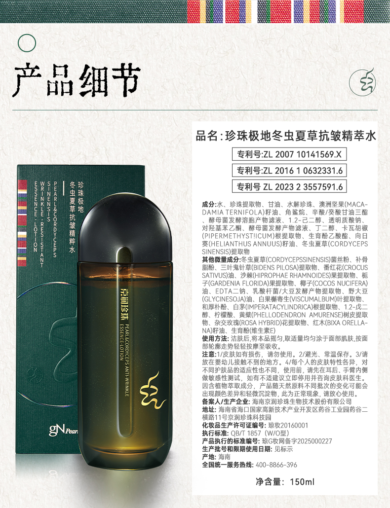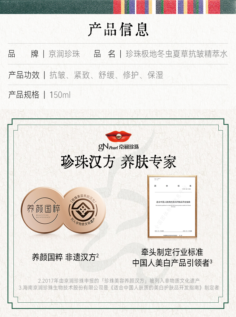 商品名称:京润珍珠 150ml冬虫夏草抗皱精粹水 6922401182144 偏远地区运费另算