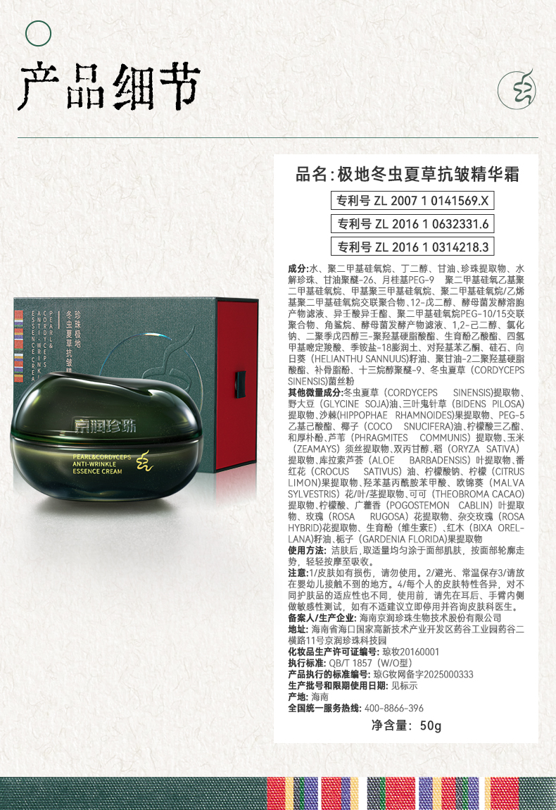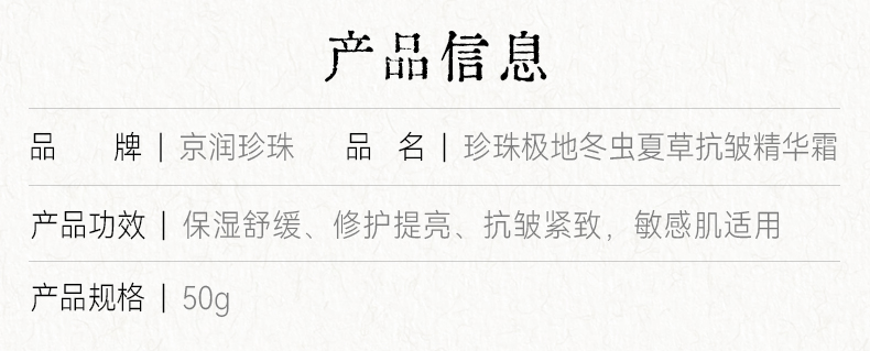 京润珍珠50g冬虫夏草抗皱精华霜6922401182205 偏远另加运费