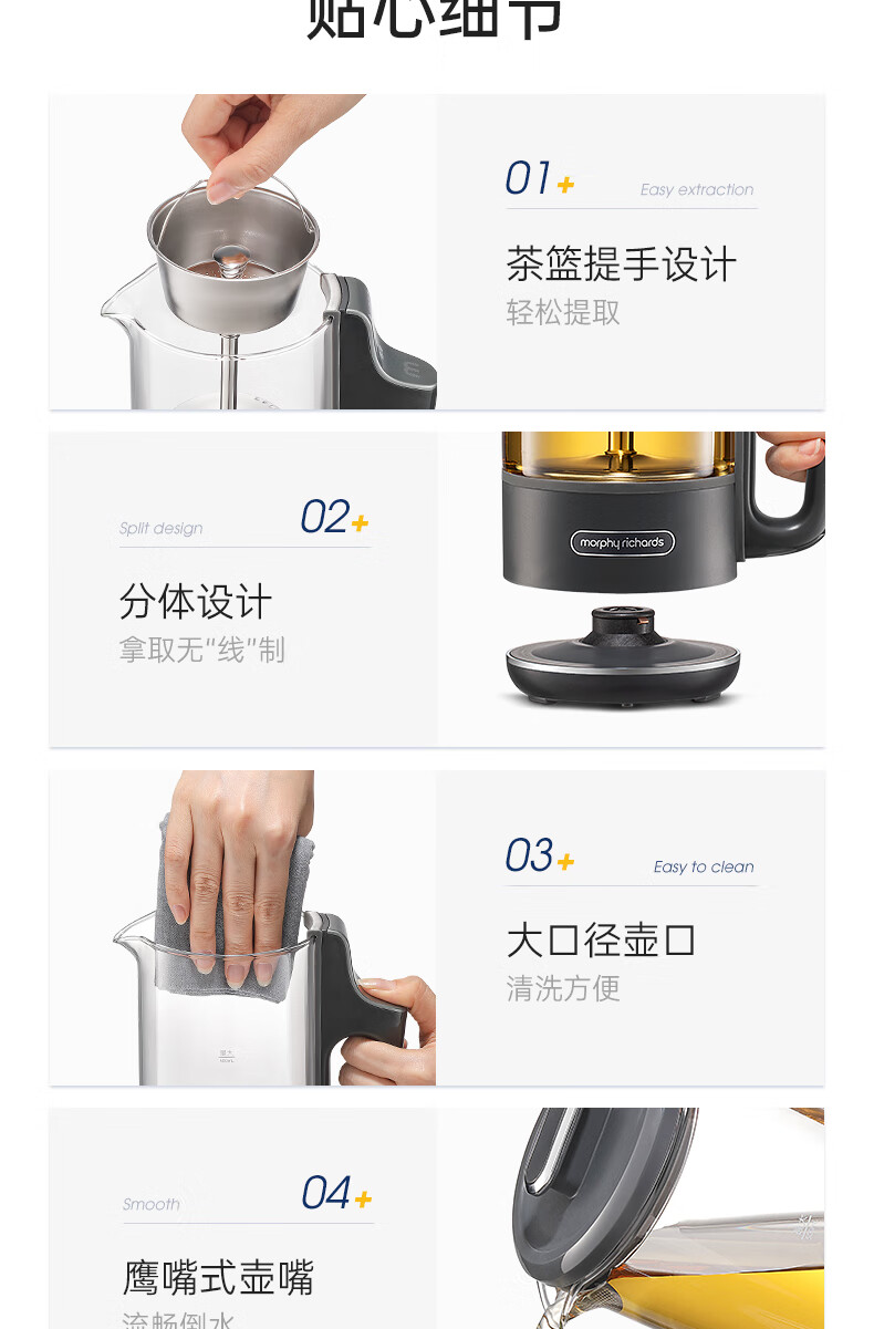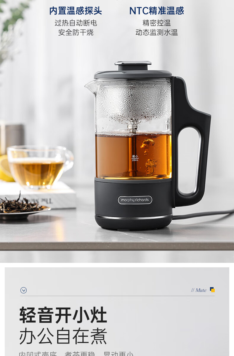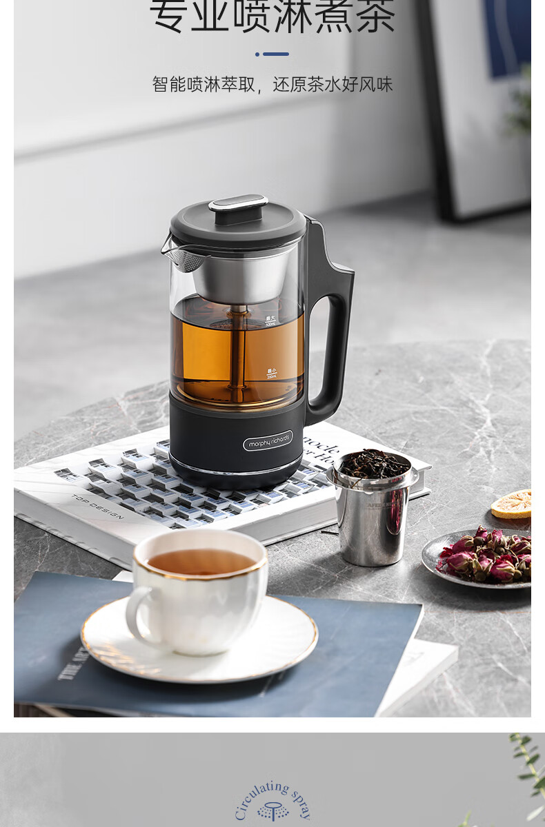 商品名称:摩飞电器(Morphyrichards)喷淋煮茶器养生壶 家用蒸煮蒸茶器煮水器 便携迷你烧水壶 花茶泡茶电水壶 0.5L 深空灰MR6082【智能喷淋萃取】