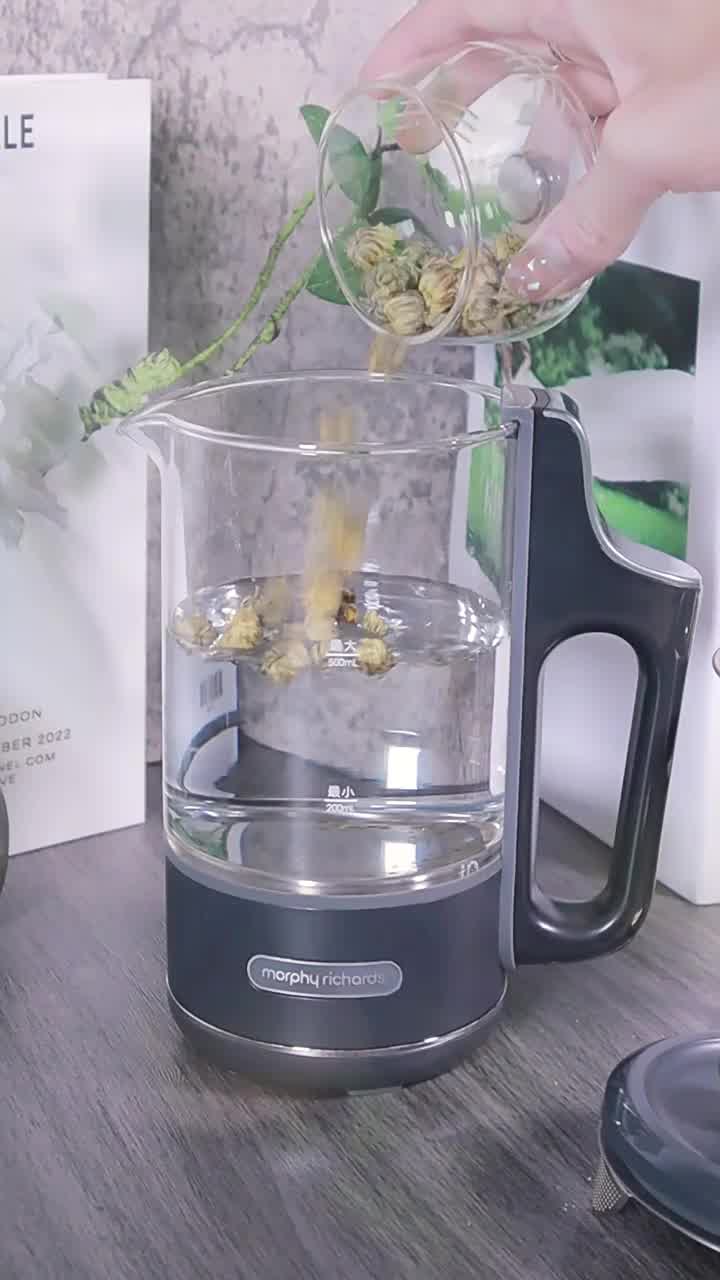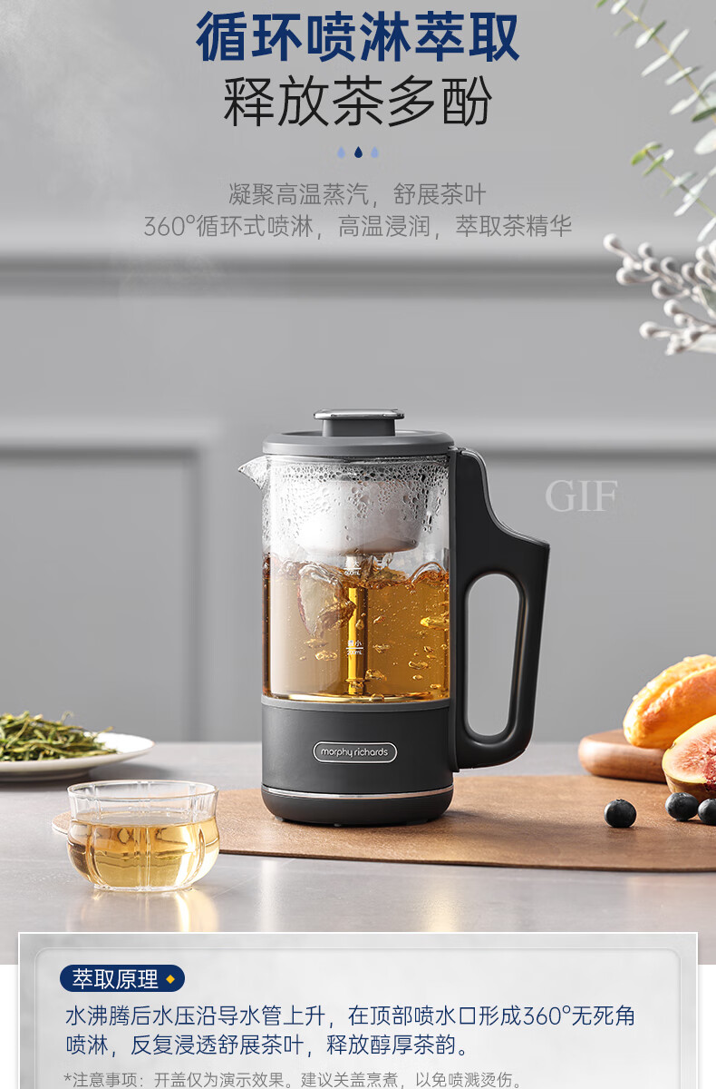 摩飞电器(Morphyrichards)喷淋煮茶器养生壶 家用蒸煮蒸茶器煮水器 便携迷你烧水壶 花茶泡茶电水壶 0.5L 深空灰MR6082【智能喷淋萃取】