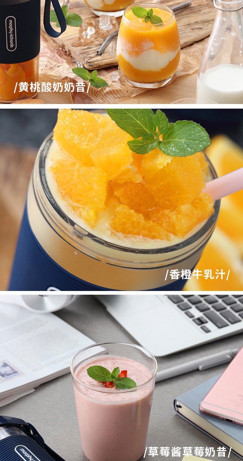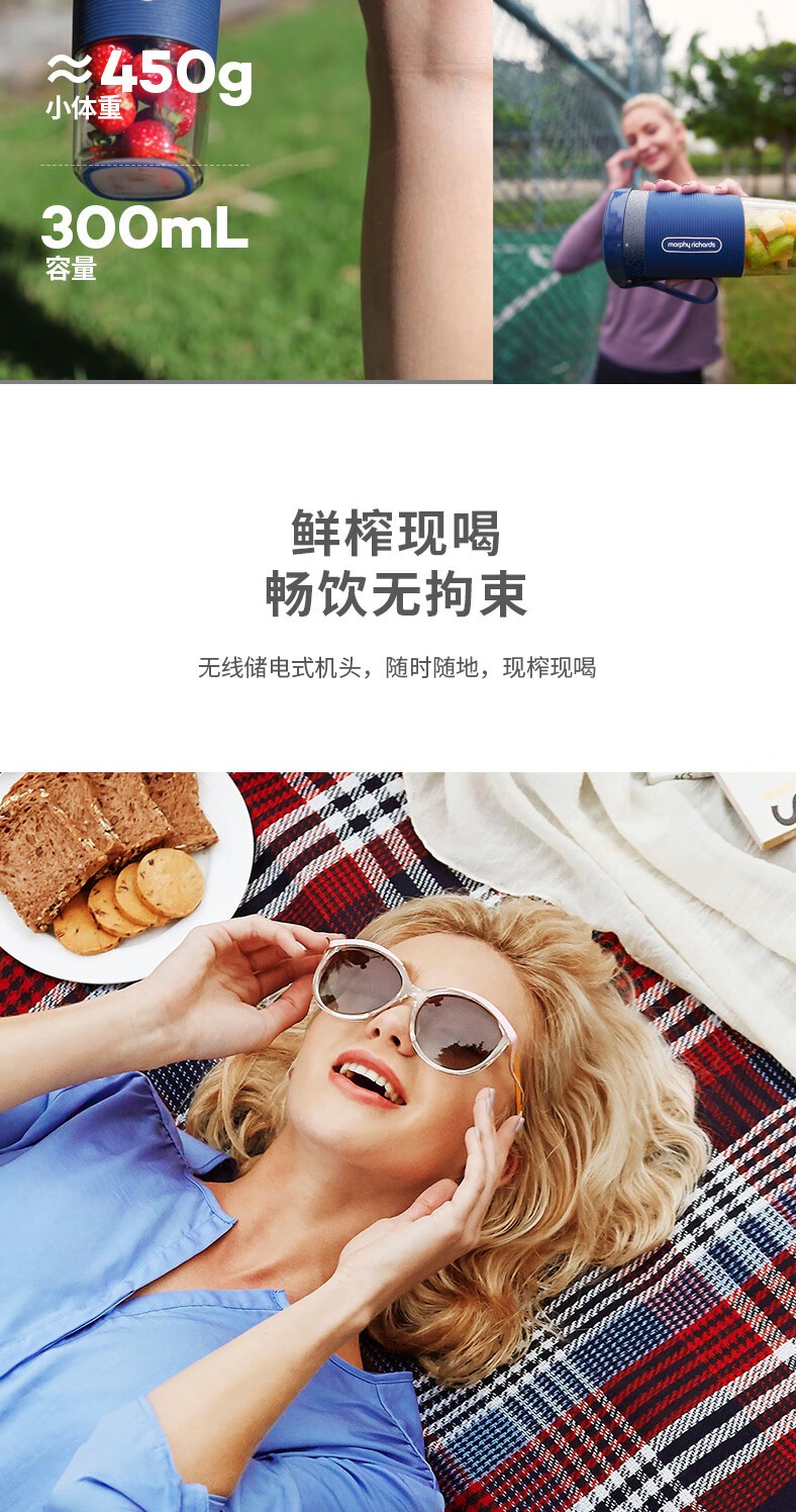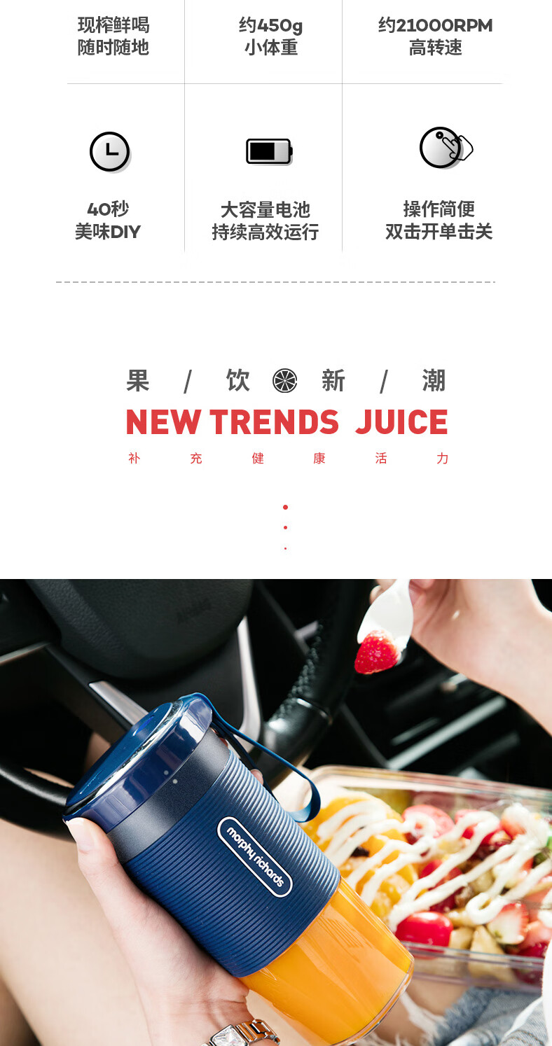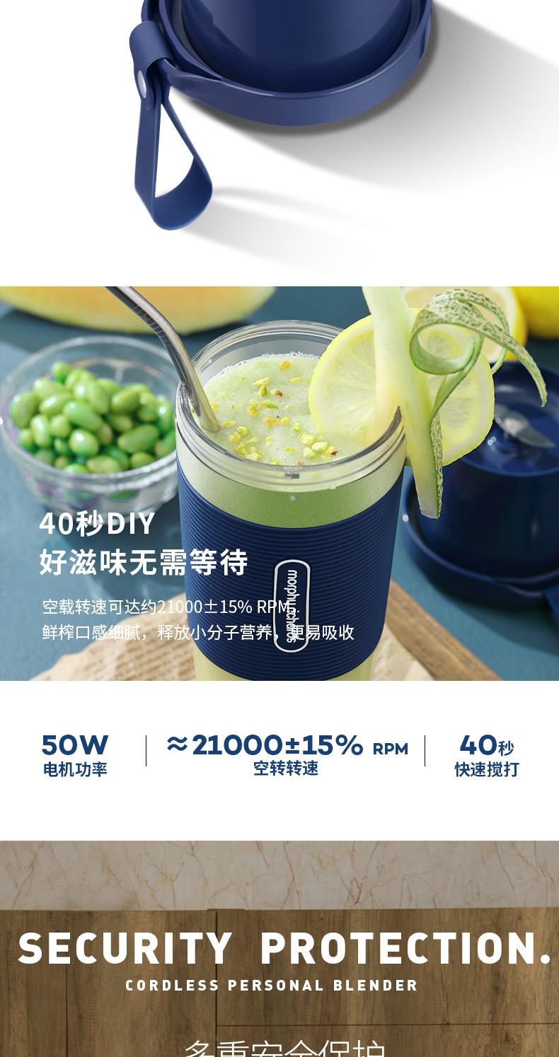 商品名称:摩飞电器(Morphyrichards)榨汁机现榨鲜喝 便携式榨汁杯 磁吸充电大容量电池迷你无线果汁机 料理机小体重随行杯 MR9600 蓝色/粉/白