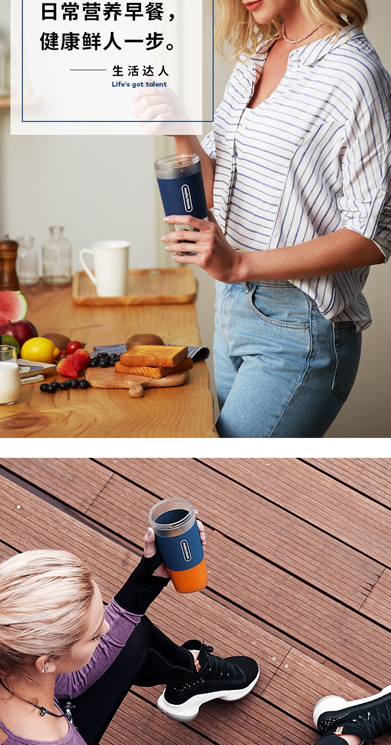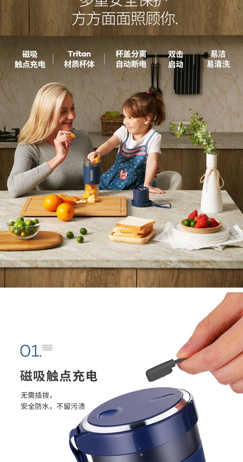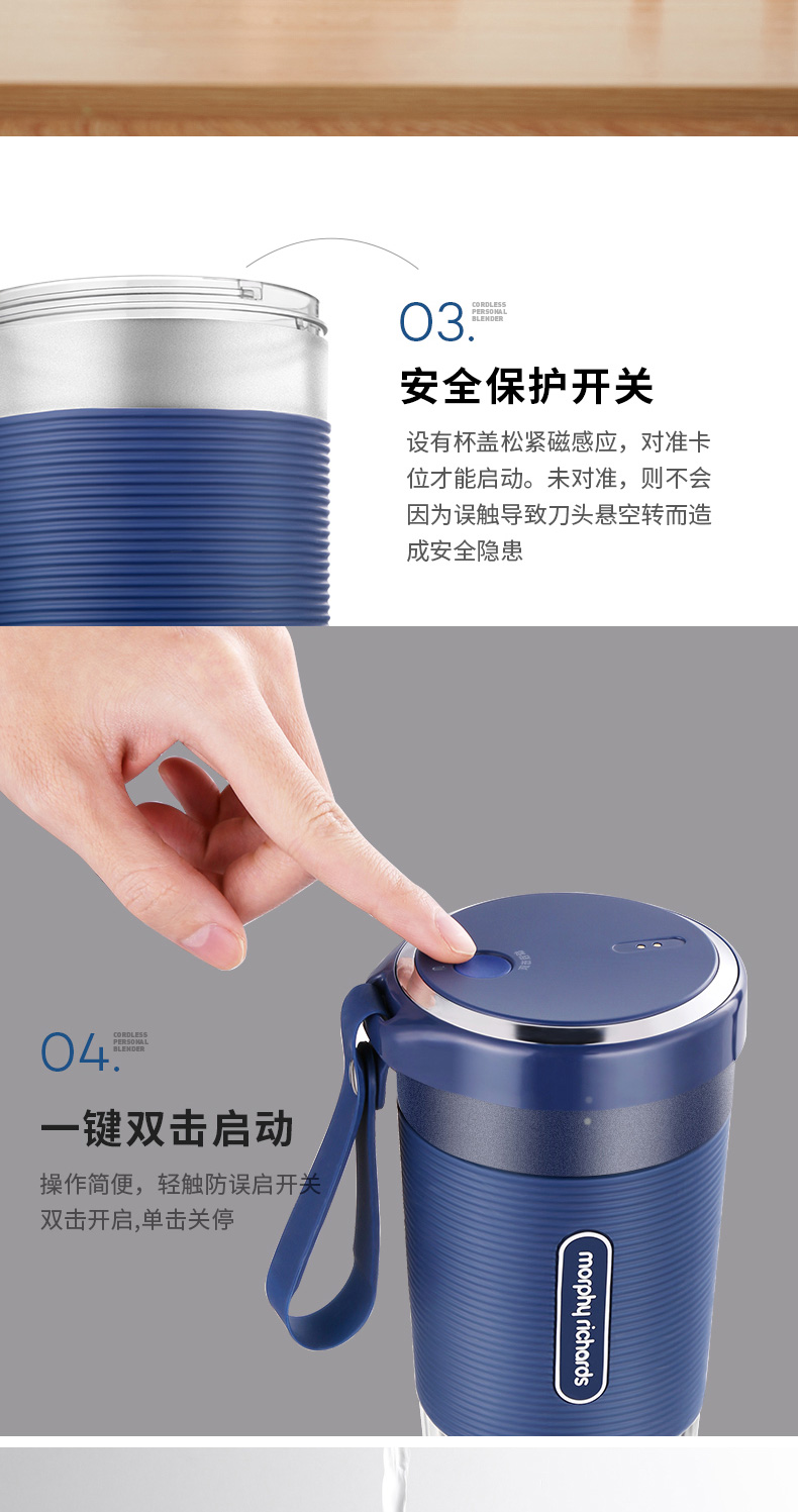 商品名称:摩飞电器(Morphyrichards)榨汁机现榨鲜喝 便携式榨汁杯 磁吸充电大容量电池迷你无线果汁机 料理机小体重随行杯 MR9600 蓝色/粉/白