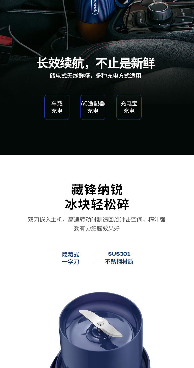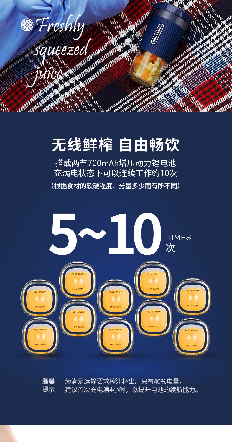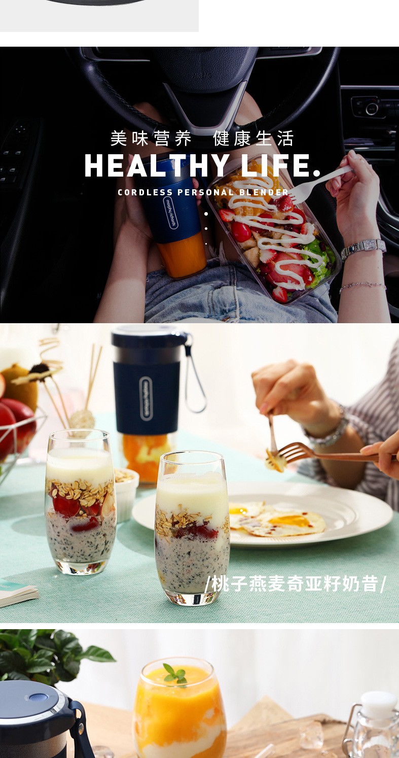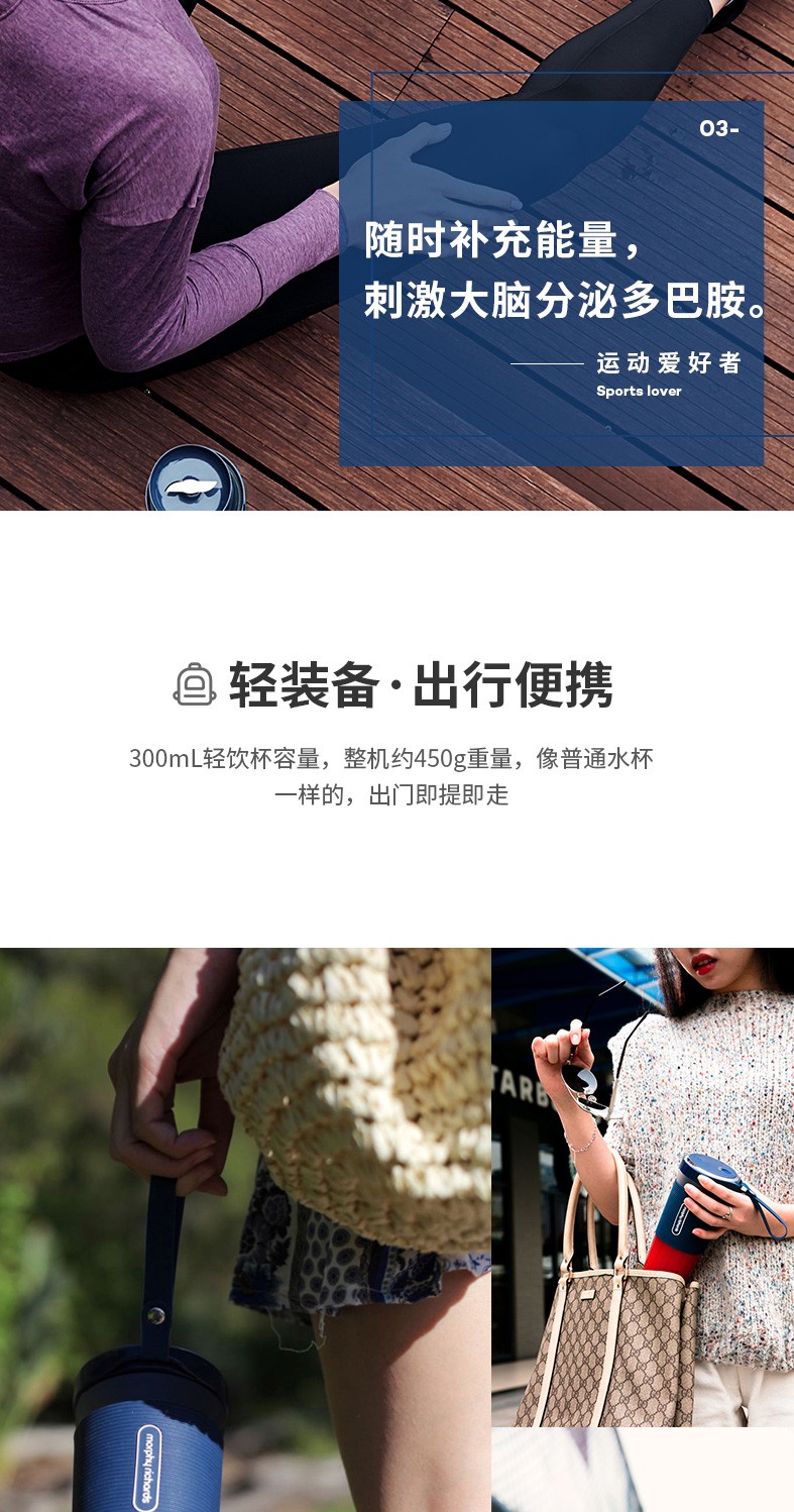 商品名称:摩飞电器(Morphyrichards)榨汁机现榨鲜喝 便携式榨汁杯 磁吸充电大容量电池迷你无线果汁机 料理机小体重随行杯 MR9600 蓝色/粉/白