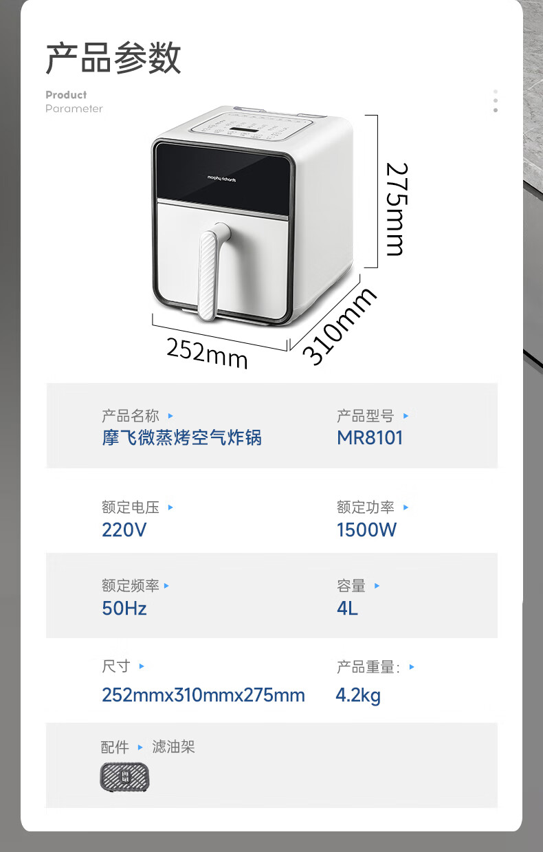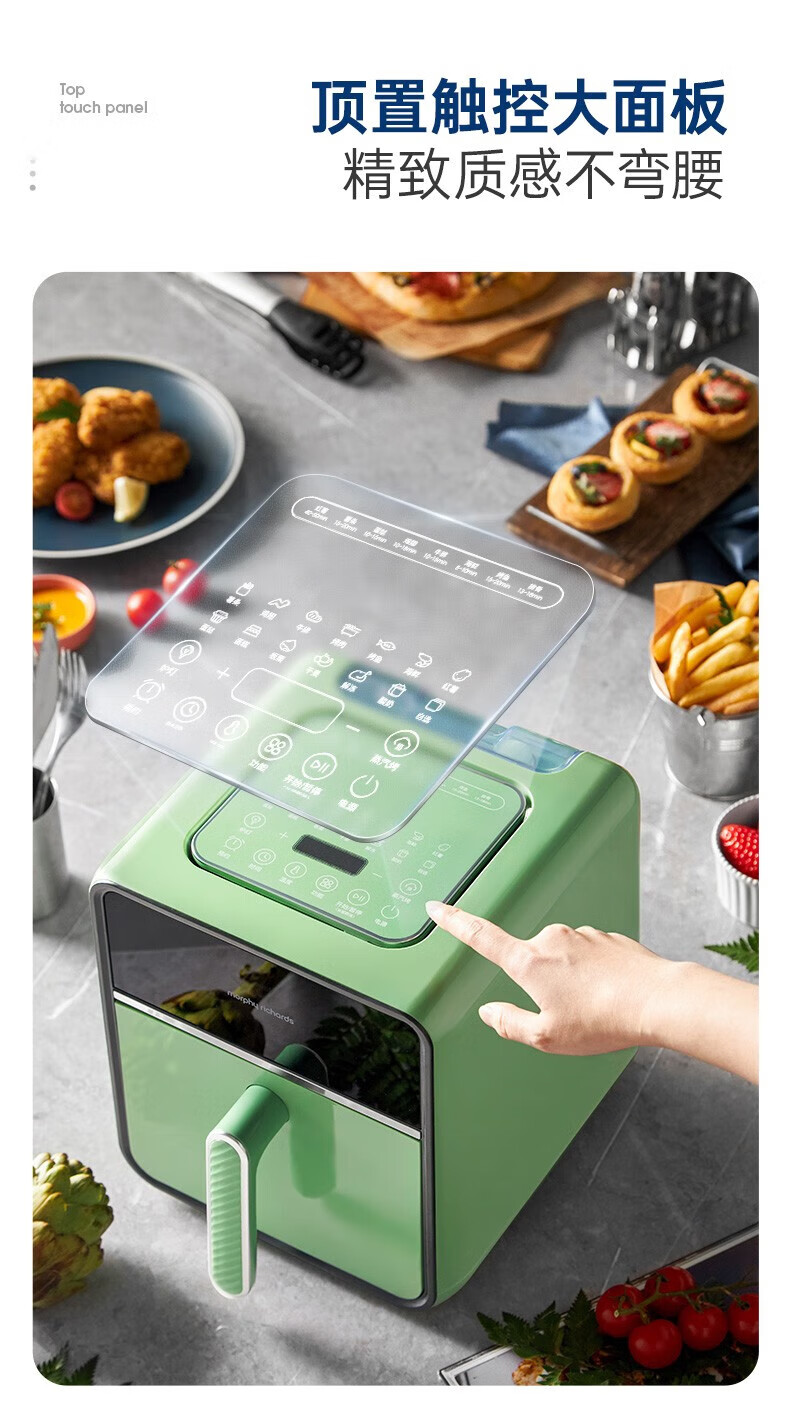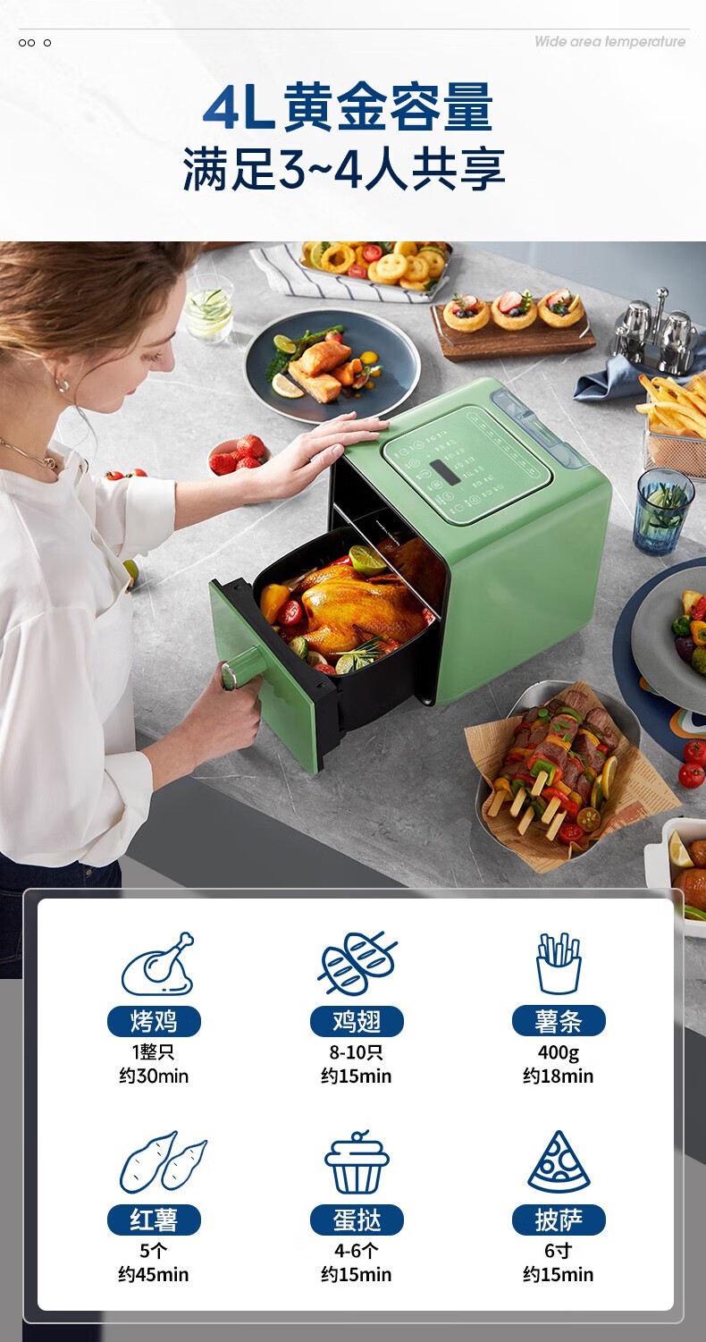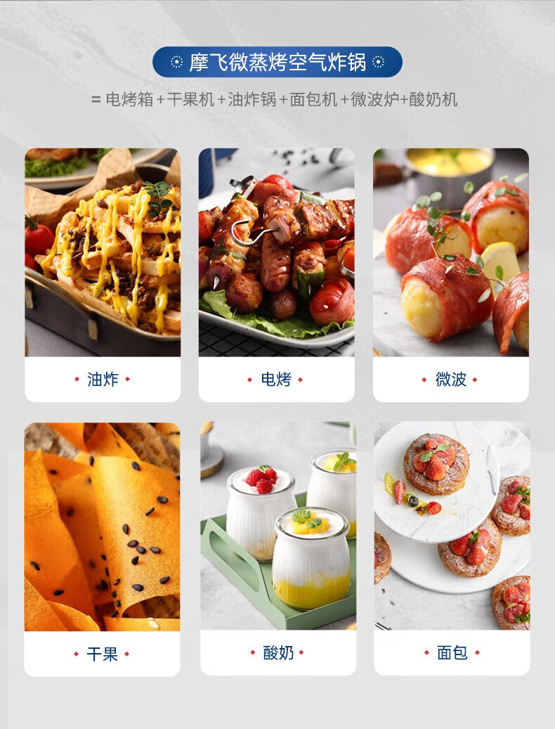 商品名称:摩飞电器微蒸烤空气炸锅 家用不用翻面全自动4升大容量一体机透明可视免翻蒸汽烤多功能MR8101 椰奶白/蓝/绿 4L