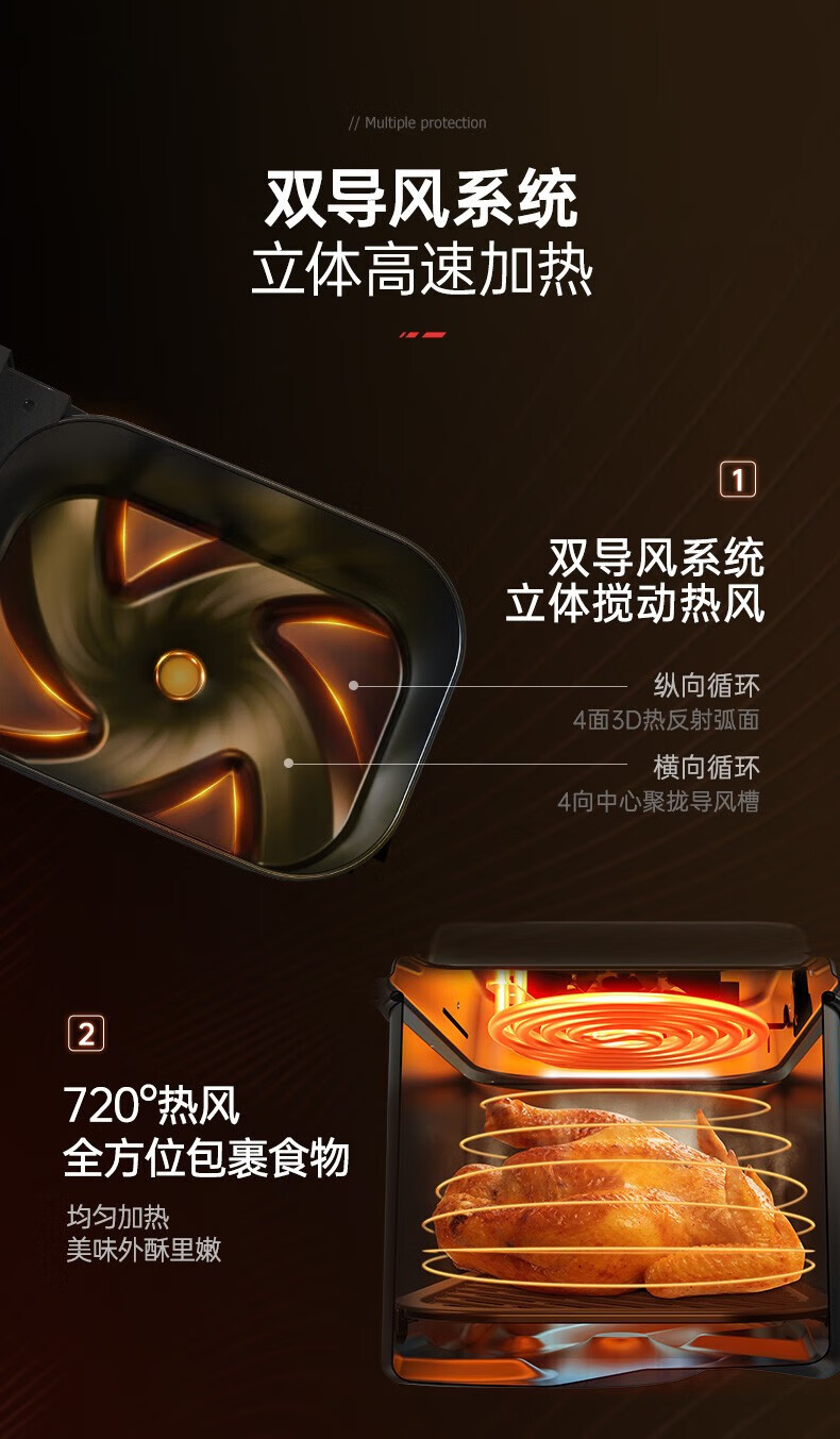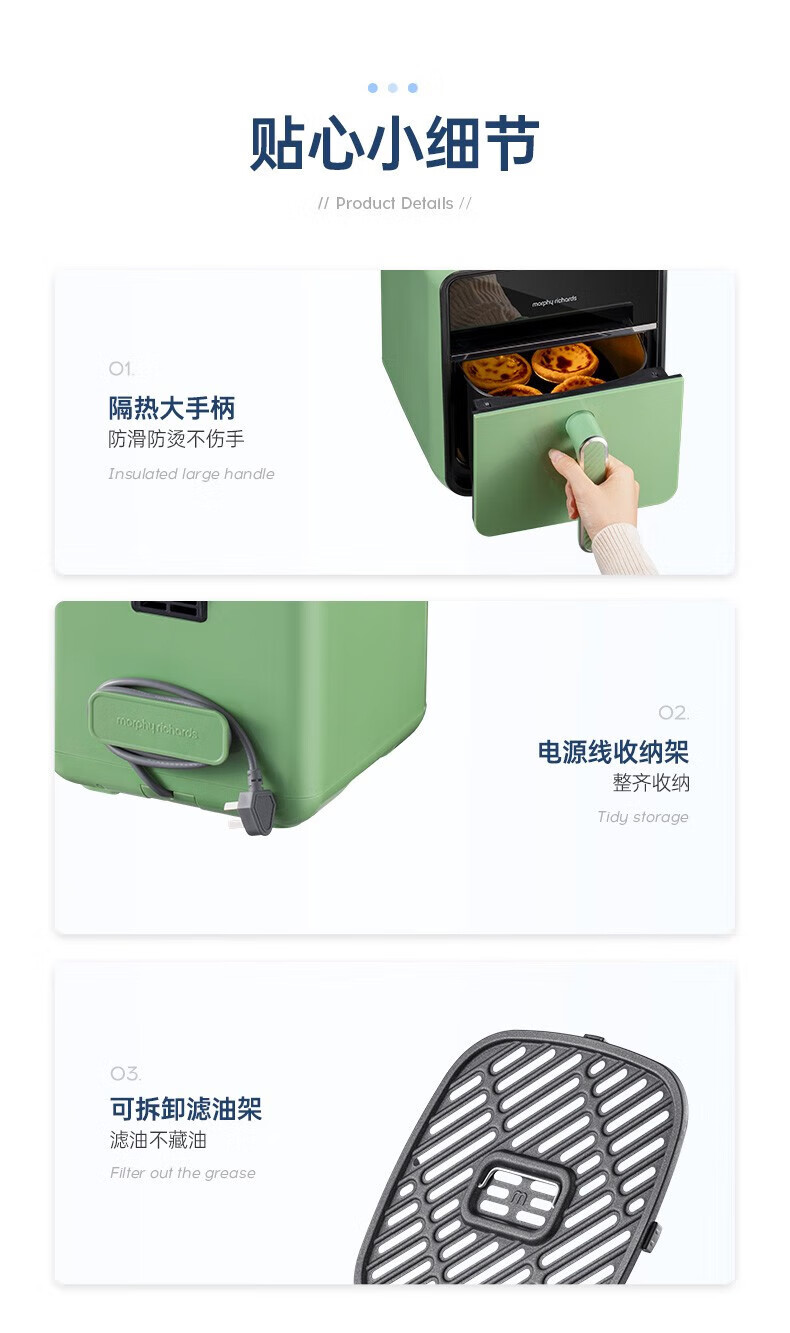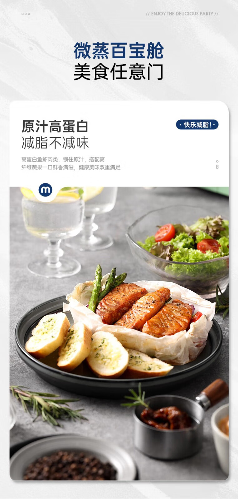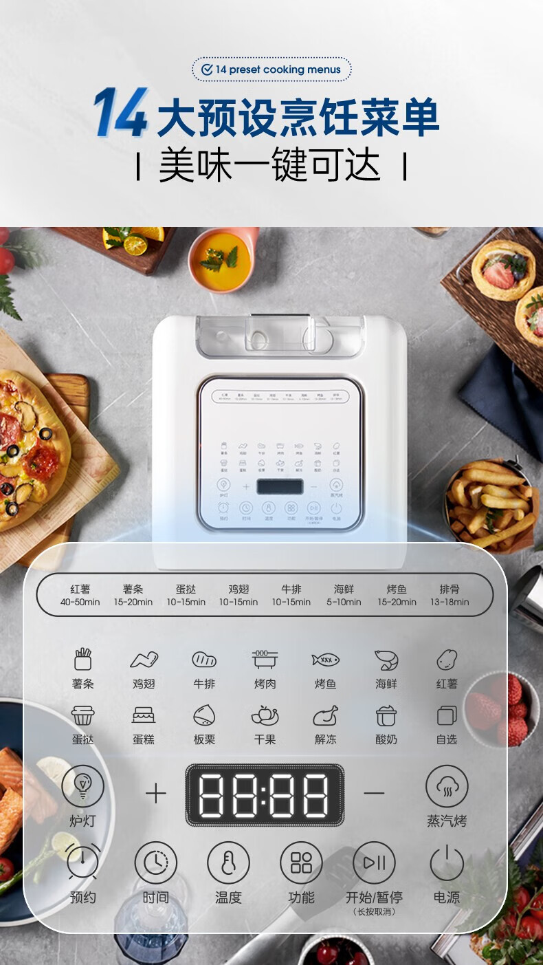 商品名称:摩飞电器微蒸烤空气炸锅 家用不用翻面全自动4升大容量一体机透明可视免翻蒸汽烤多功能MR8101 椰奶白/蓝/绿 4L