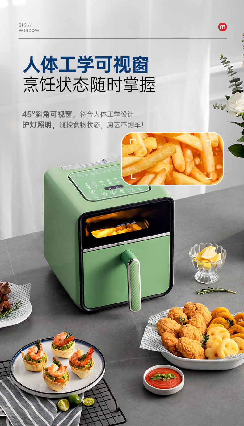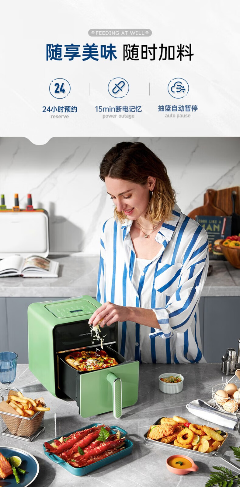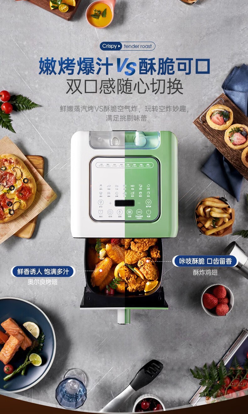 摩飞电器微蒸烤空气炸锅 家用不用翻面全自动4升大容量一体机透明可视免翻蒸汽烤多功能MR8101 椰奶白/蓝/绿 4L