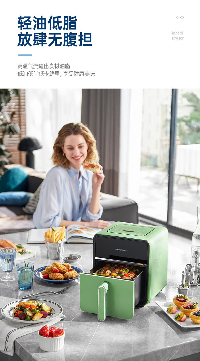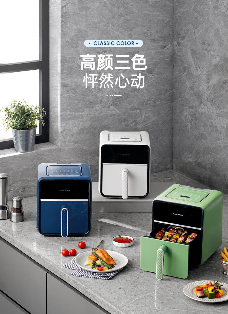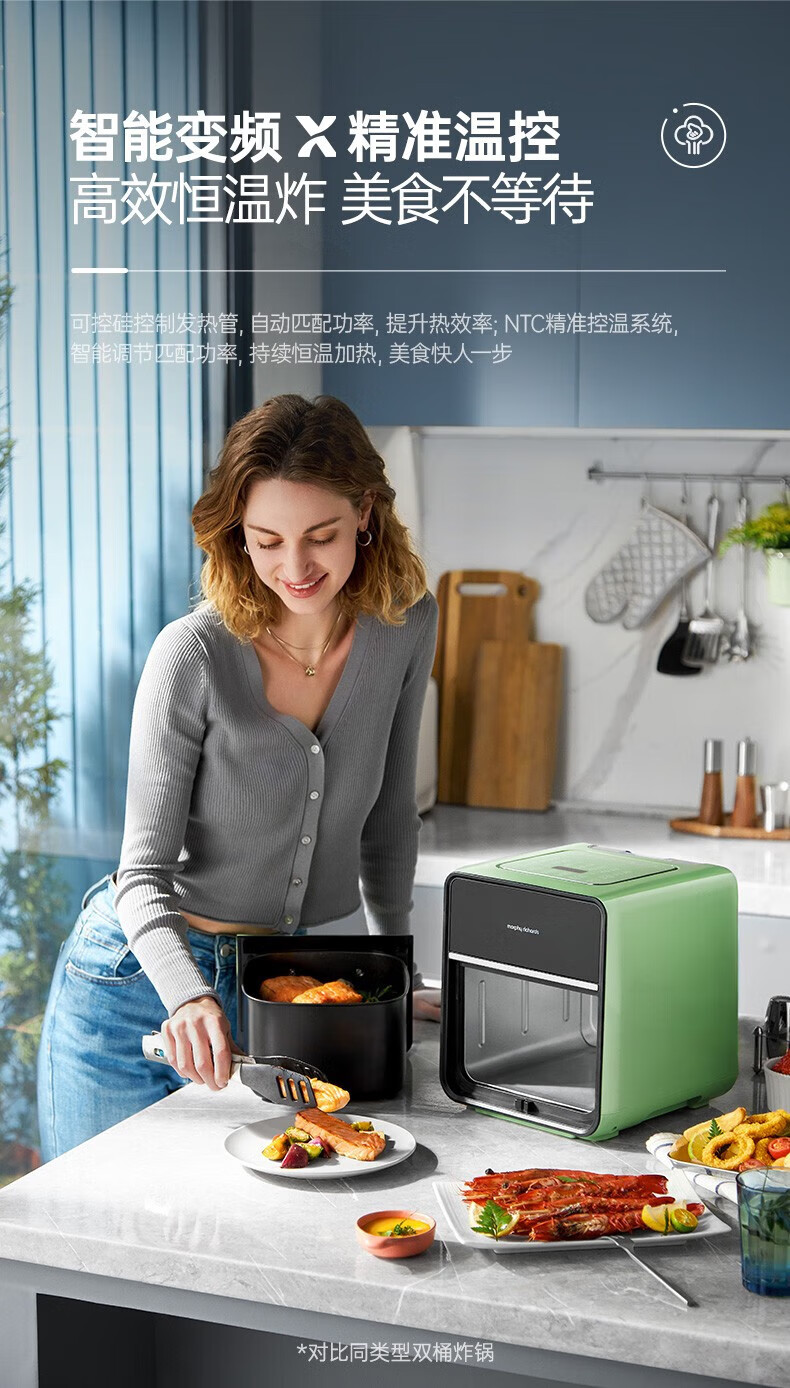 摩飞电器微蒸烤空气炸锅 家用不用翻面全自动4升大容量一体机透明可视免翻蒸汽烤多功能MR8101 椰奶白/蓝/绿 4L