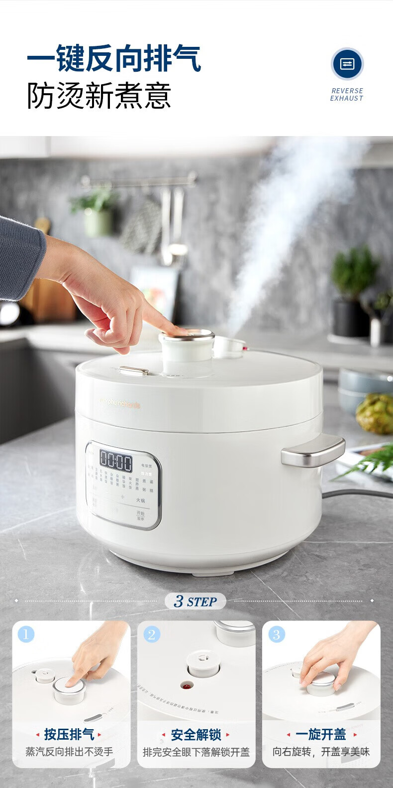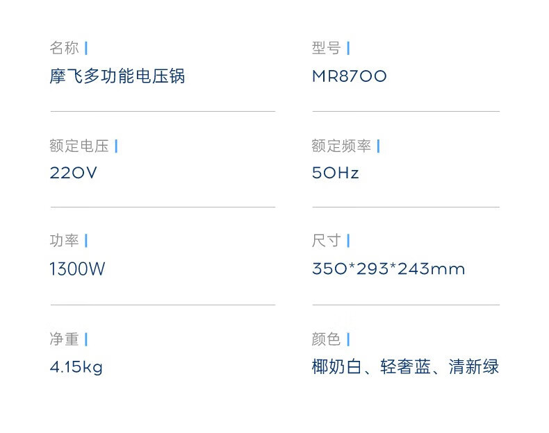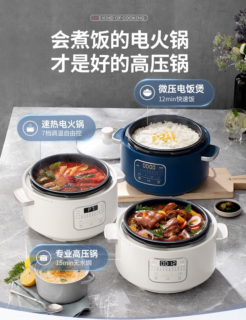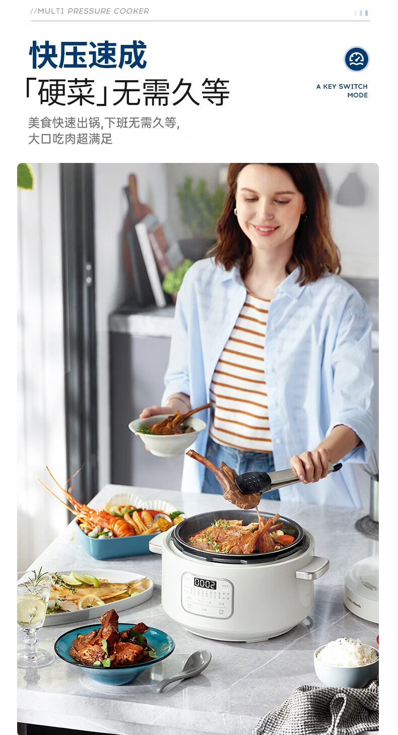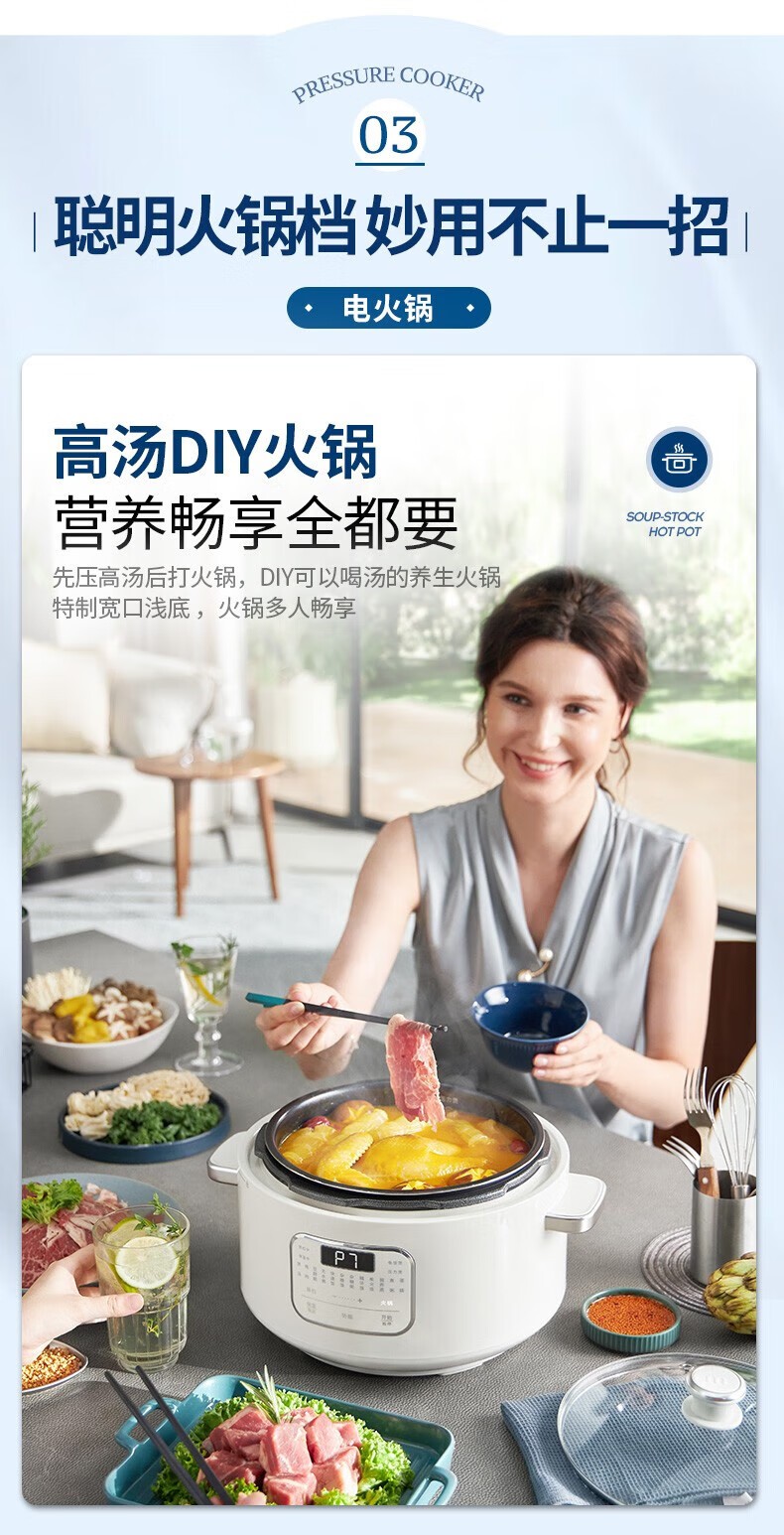 商品名称:摩飞电器三合一电压力锅4升电高压锅高压电饭锅压力电饭煲多功能电火锅大容量家用3-4-5-6个人 MR8700 【快速高压炖煮】椰奶白/蓝色 4L