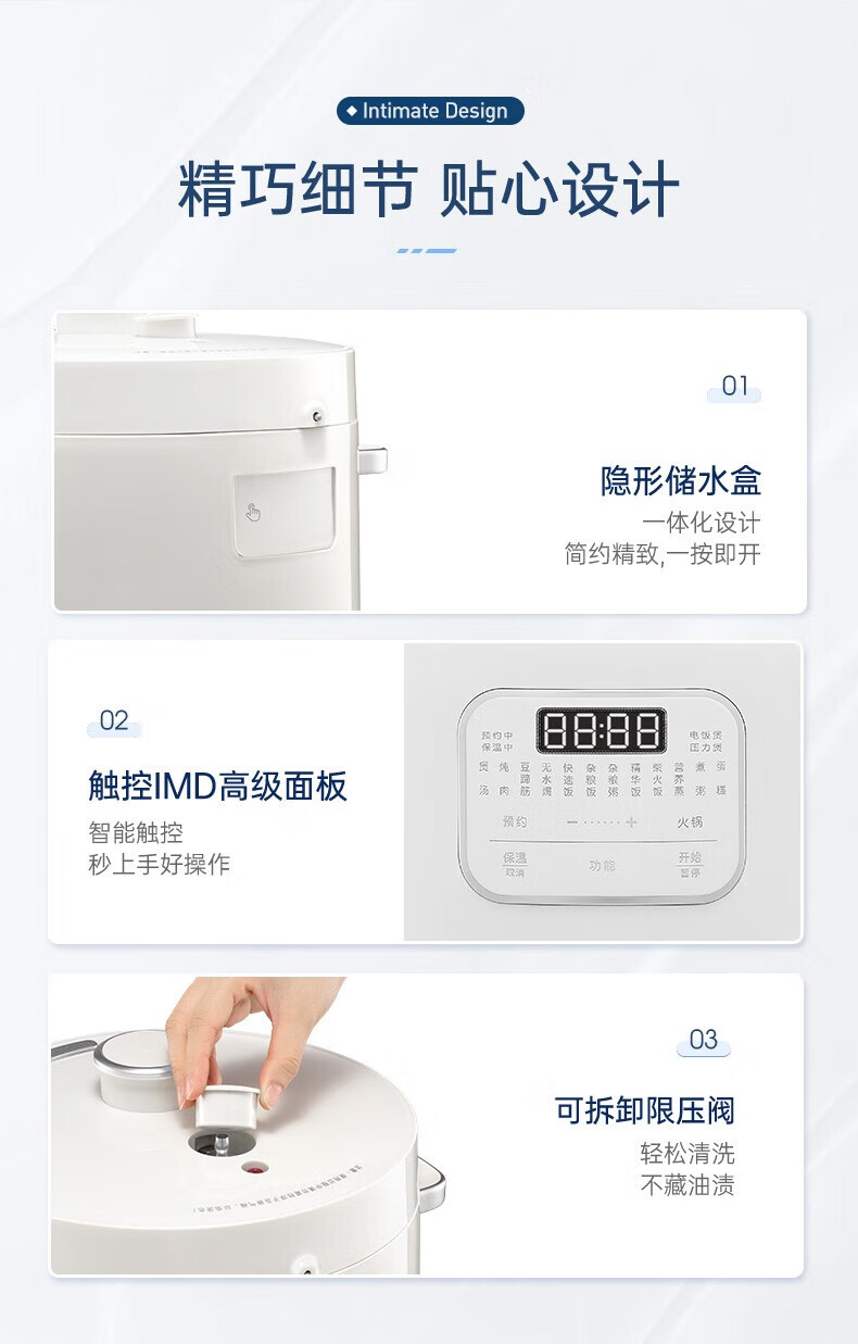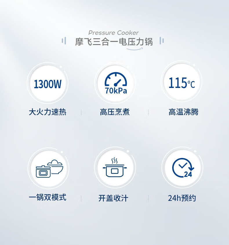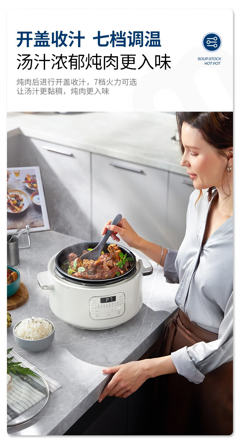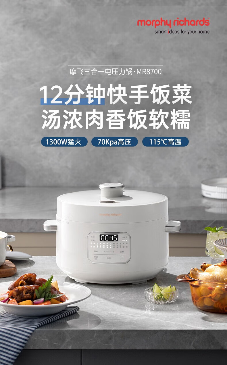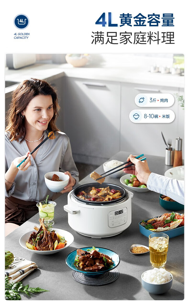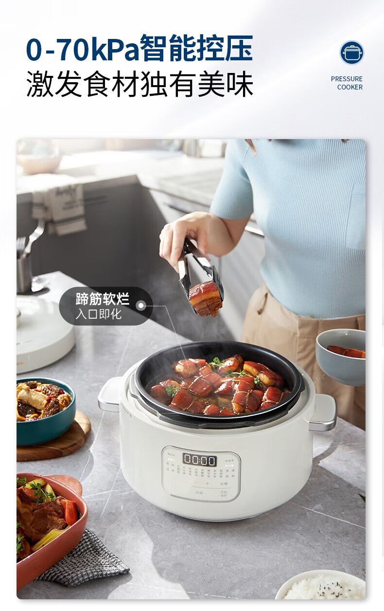 商品名称:摩飞电器三合一电压力锅4升电高压锅高压电饭锅压力电饭煲多功能电火锅大容量家用3-4-5-6个人 MR8700 【快速高压炖煮】椰奶白/蓝色 4L