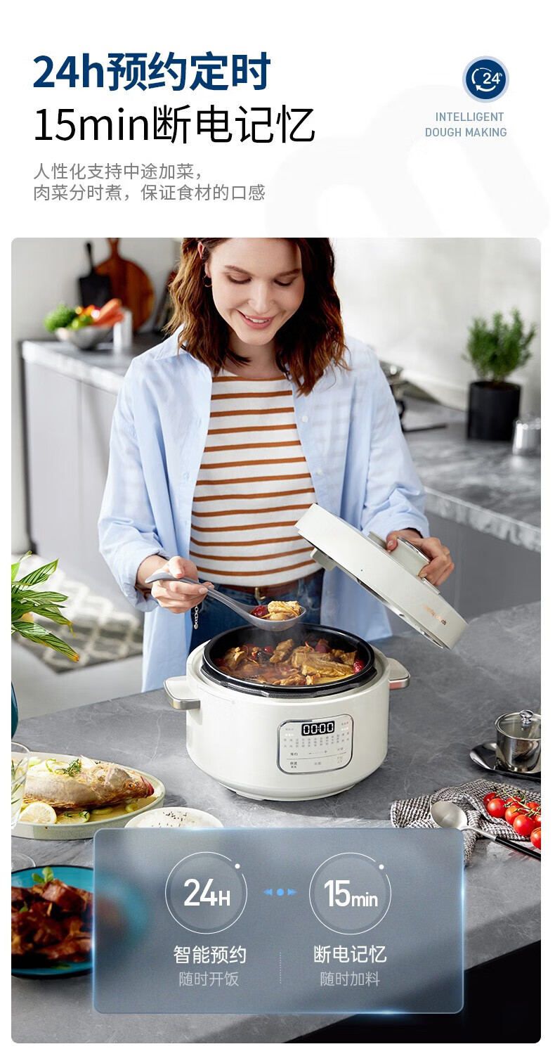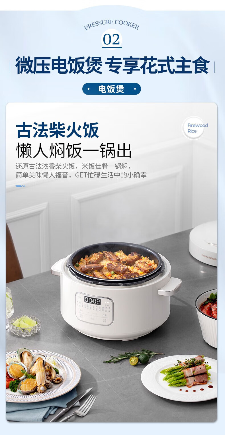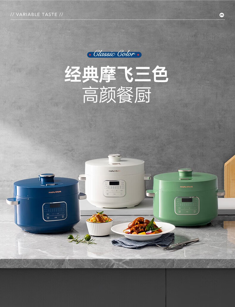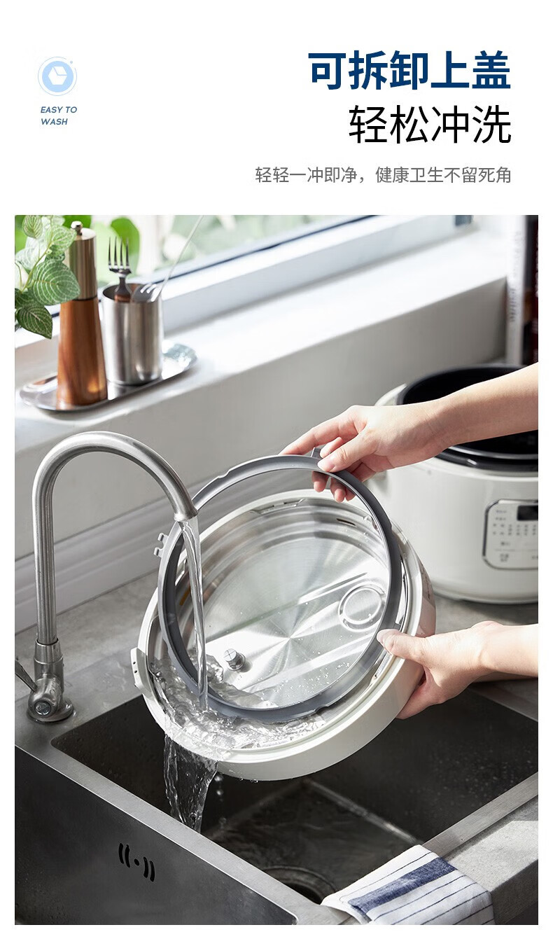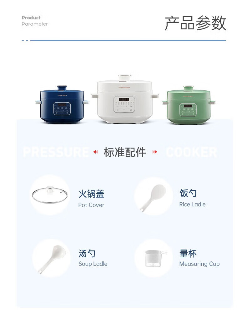 商品名称:摩飞电器三合一电压力锅4升电高压锅高压电饭锅压力电饭煲多功能电火锅大容量家用3-4-5-6个人 MR8700 【快速高压炖煮】椰奶白/蓝色 4L
