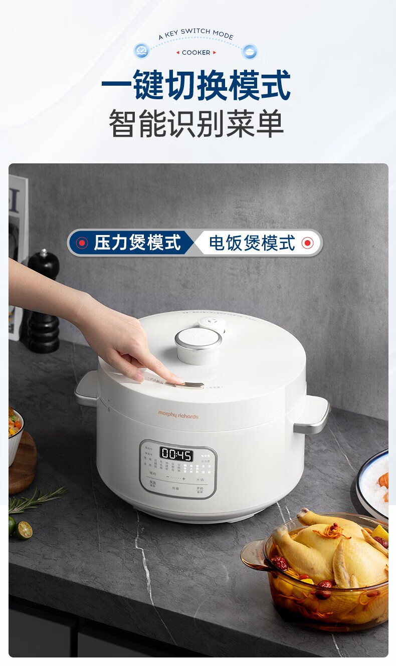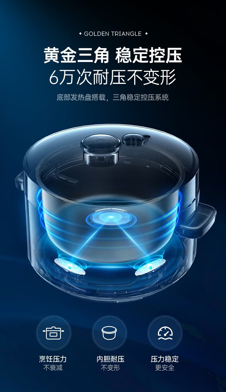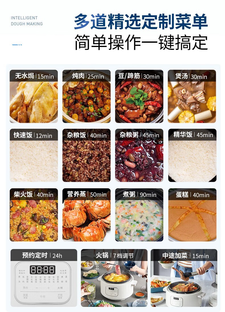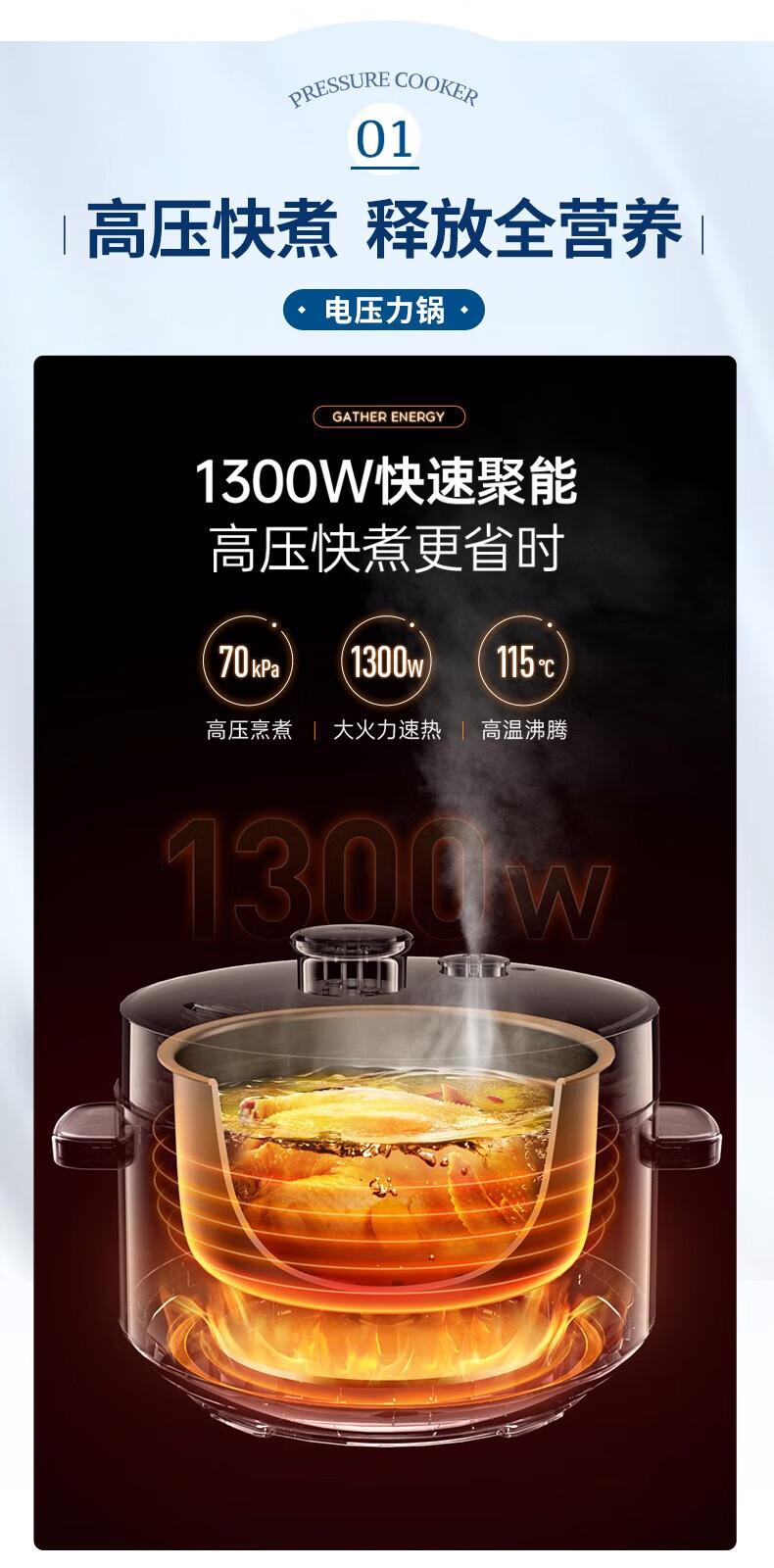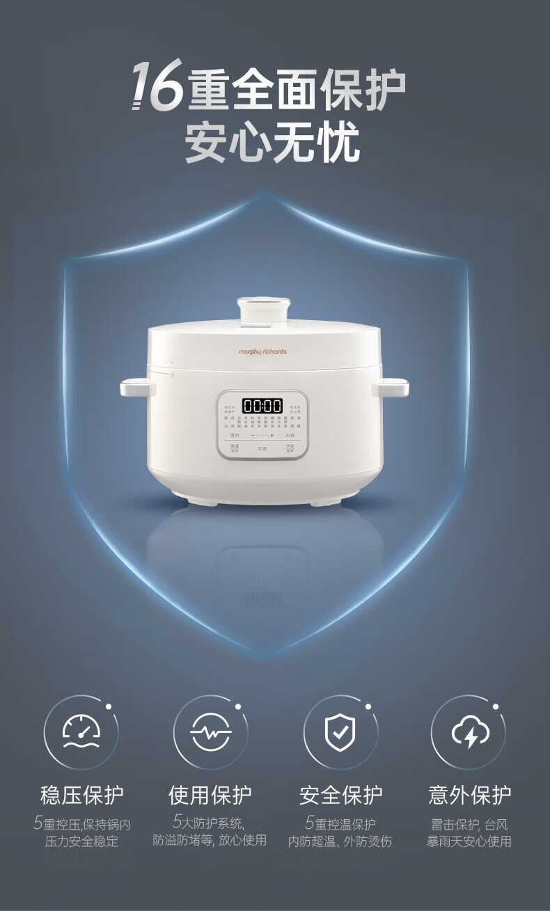 商品名称:摩飞电器三合一电压力锅4升电高压锅高压电饭锅压力电饭煲多功能电火锅大容量家用3-4-5-6个人 MR8700 【快速高压炖煮】椰奶白/蓝色 4L