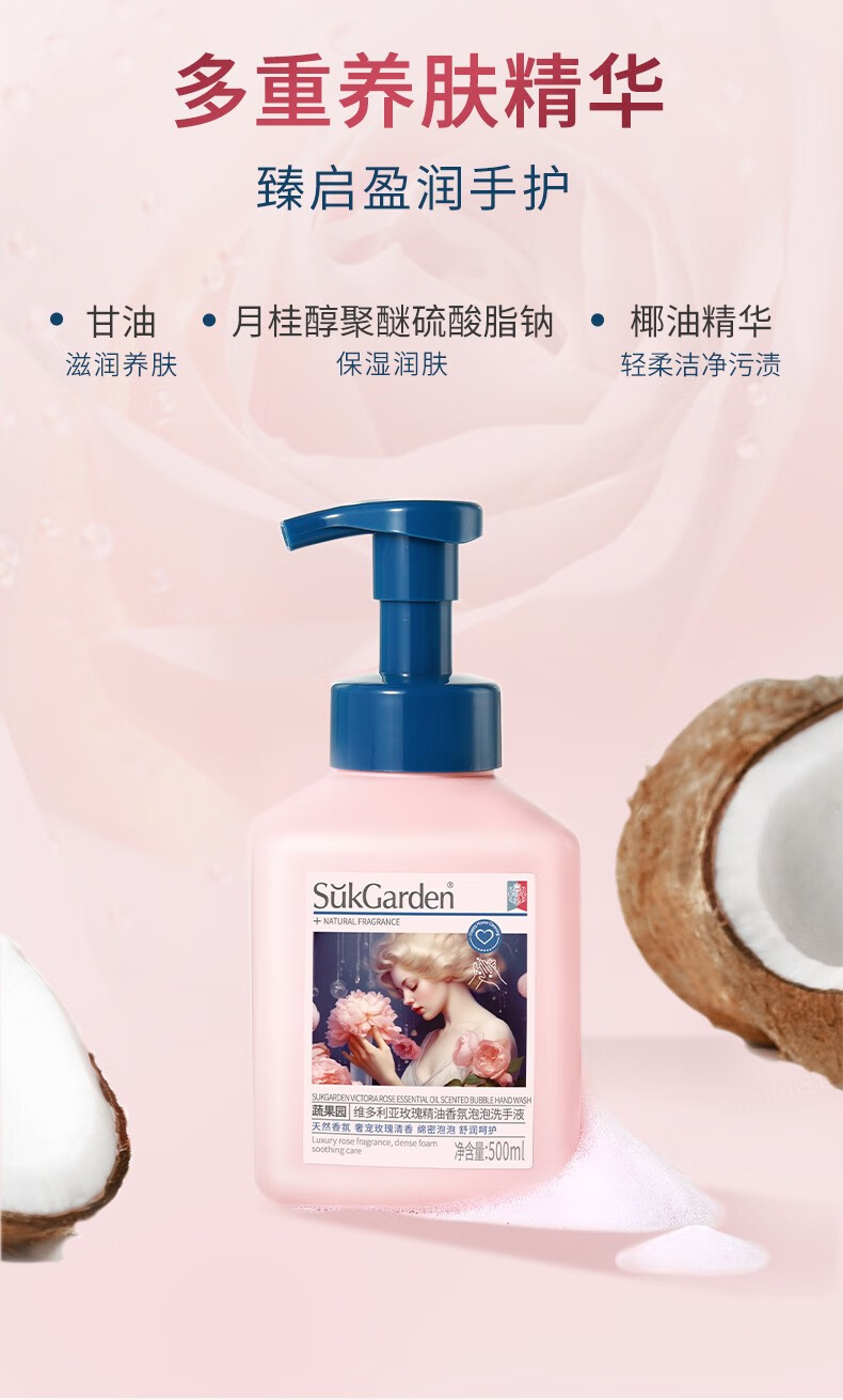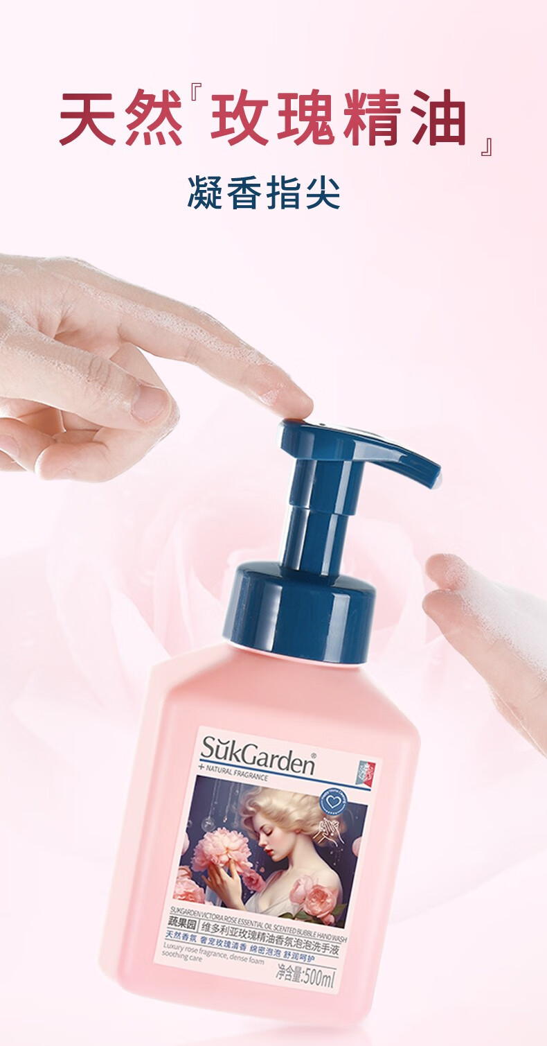 商品名称:SukGarden蔬果园维多利亚玫瑰精油香氛泡泡洗手液500mlSGY0459