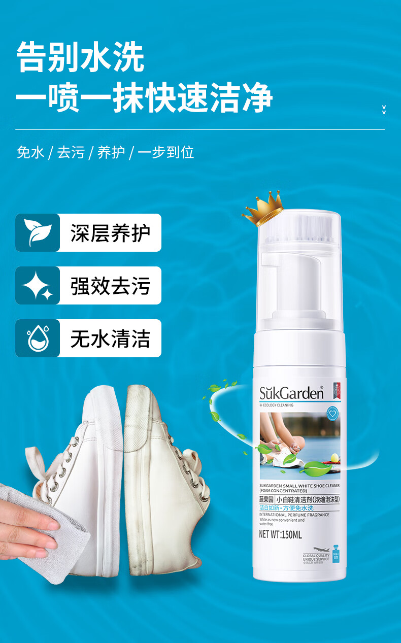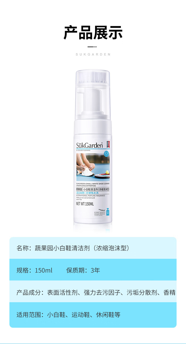 商品名称:SukGarden蔬果园小白鞋清洗剂 150mlSGY0102
