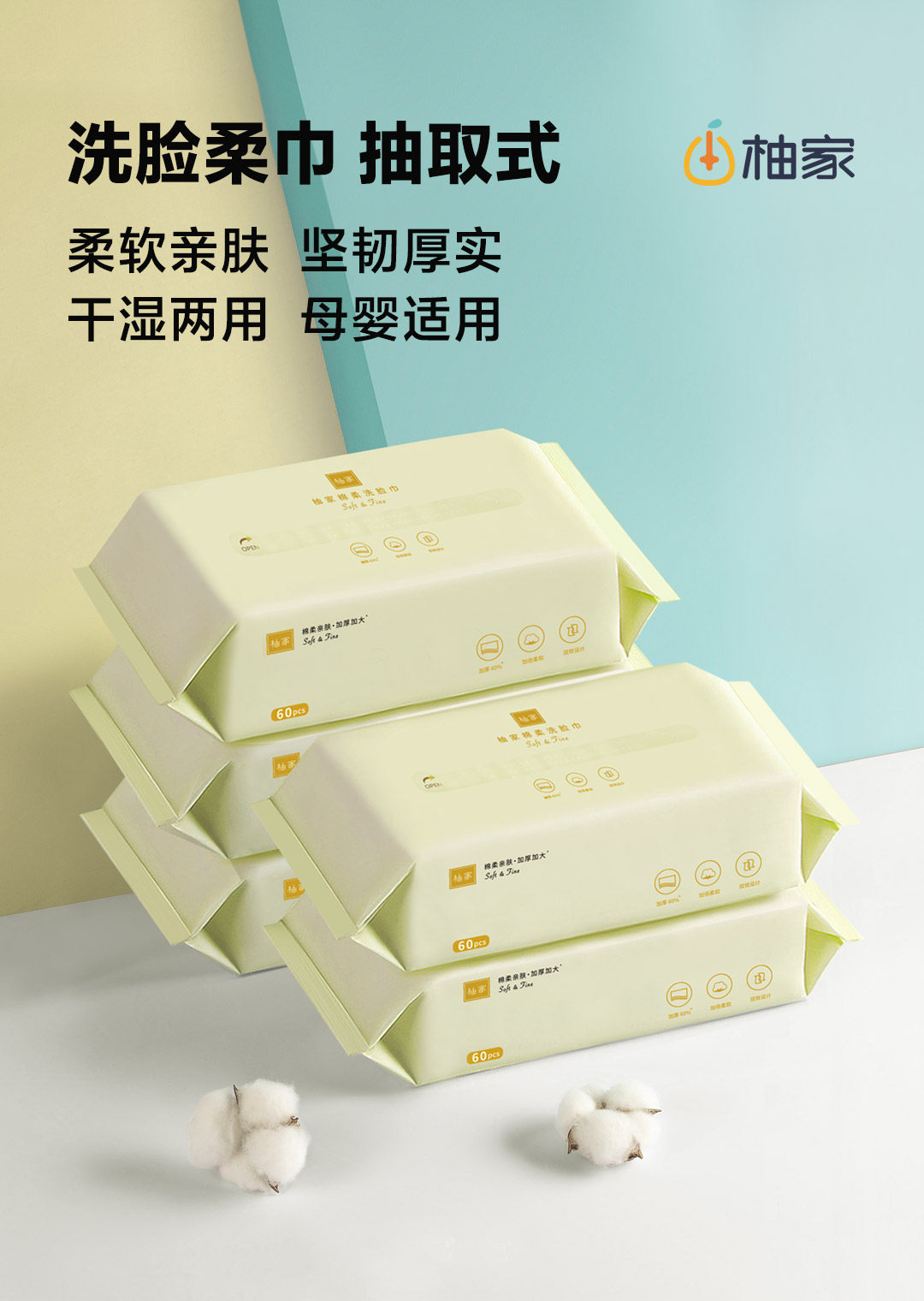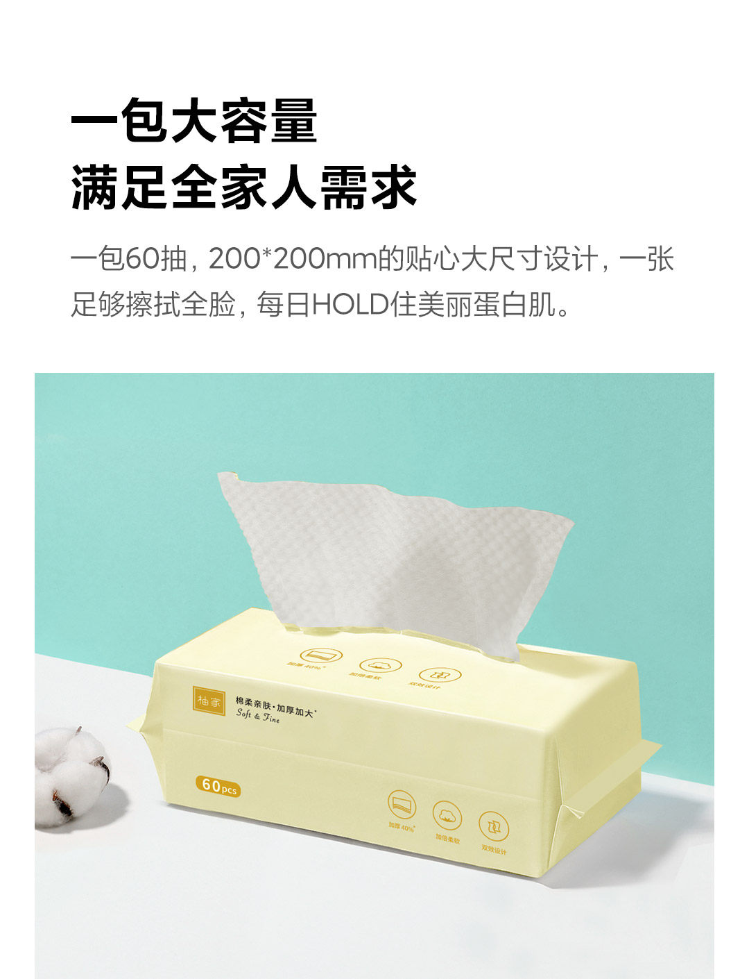 商品名称:柚家抽取式棉柔洗脸巾3包整箱 302974
