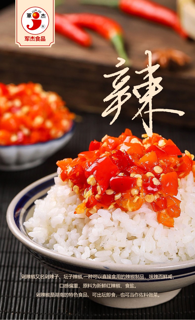 商品名称:军杰剁椒500g(中辣)