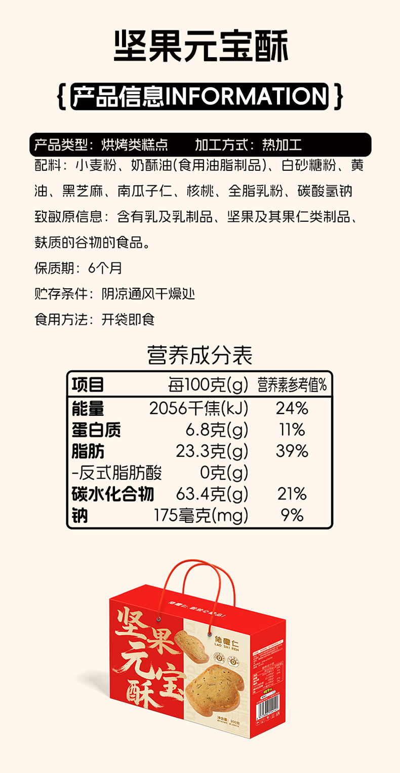 商品名称:佬食仁坚果元宝酥200g/礼盒